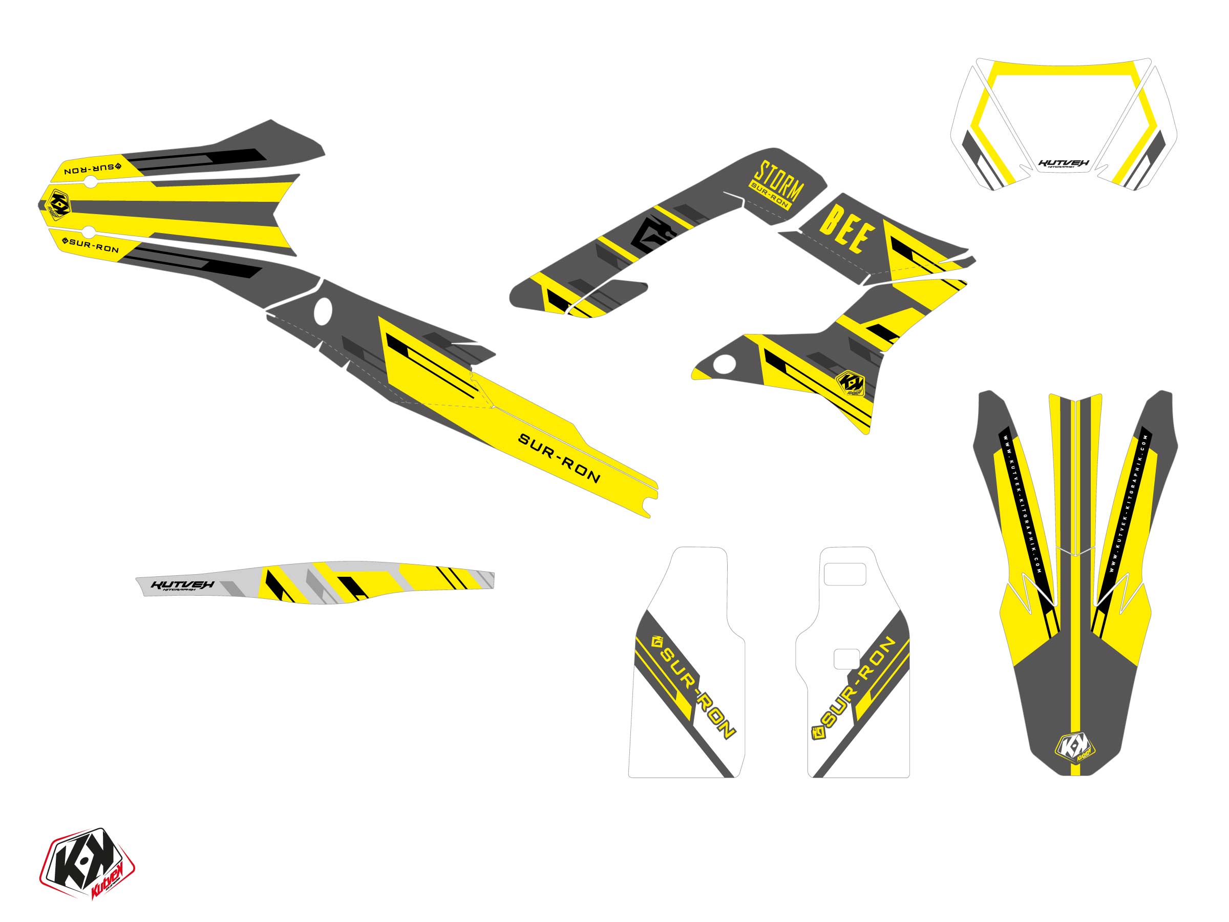Offer you now for your Dirt Bike SUR-RON STORM-BEE ENDURO a graphic kit on the colors of SLICE Yellow design.