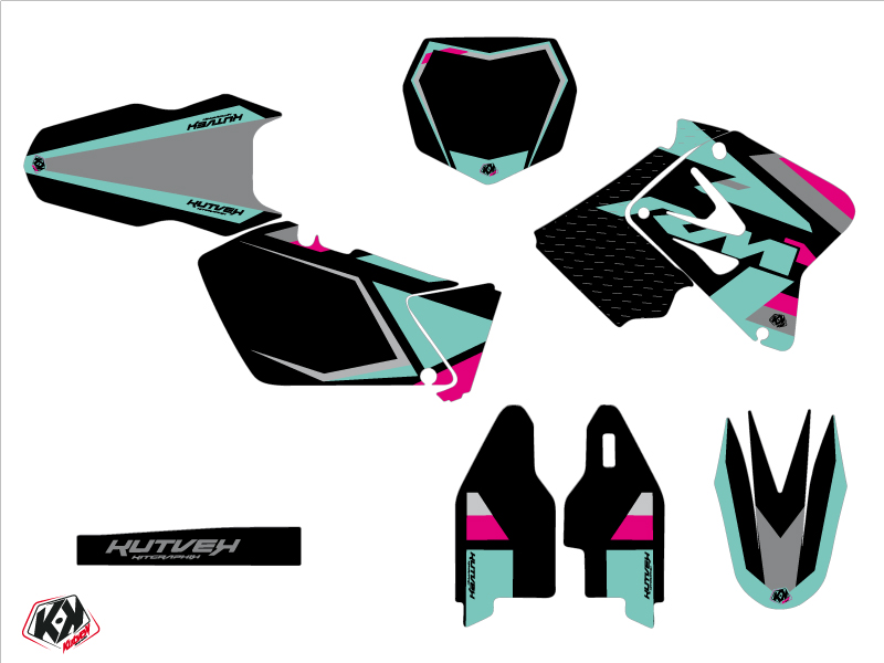 Offer you now for your Suzuki 125 RM Dirt Bike a graphic kit on the colors and brand name of LABEL Turquoise.