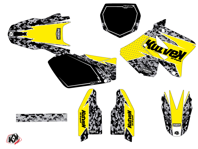 Offer you now for your Suzuki 125 RM Dirt Bike a graphic kit on the colors and brand name of PREDATOR Yellow.