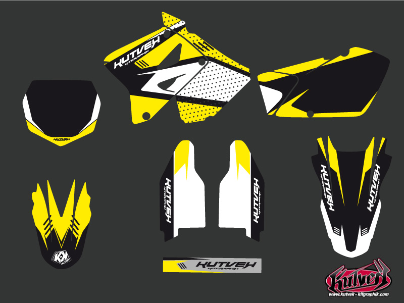 Offer you now for your Suzuki 250 RM Dirt Bike a graphic kit on the colors and brand name of CHRONO Black.