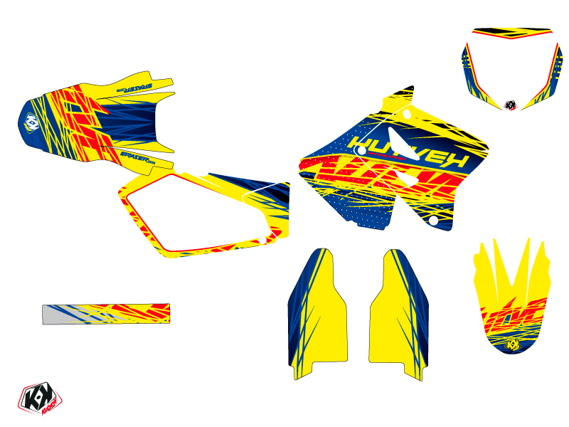 Offer you now for your Suzuki 250 RM Dirt Bike a graphic kit on the colors and brand name of ERASER Blue Yellow.