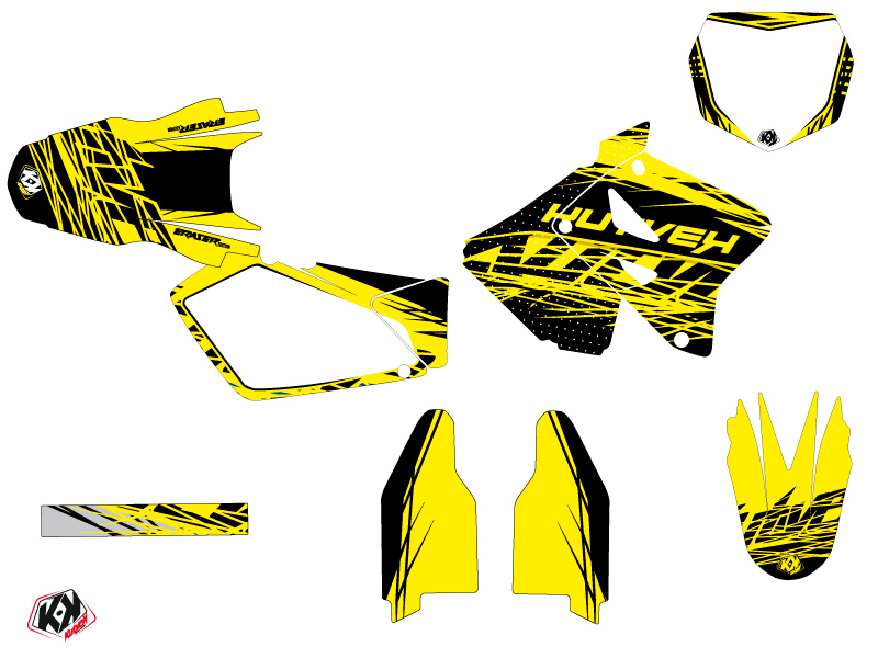 Offer you now for your Suzuki 250 RM Dirt Bike a graphic kit on the colors and brand name of ERASER Yellow Black.