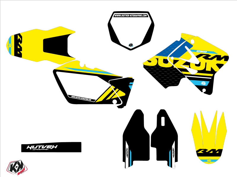 Offer you now for your Suzuki 250 RM Dirt Bike a graphic kit on the colors and brand name of GRADE Blue.