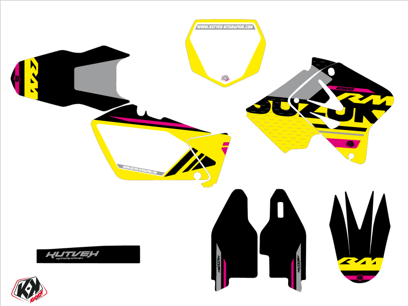 Offer you now for your Suzuki 250 RM Dirt Bike a graphic kit on the colors and brand name of GRADE Pink.