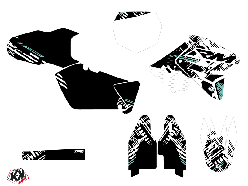 Offer you now for your Suzuki 250 RM Dirt Bike a graphic kit on the colors and brand name of ZERO Turquoise.