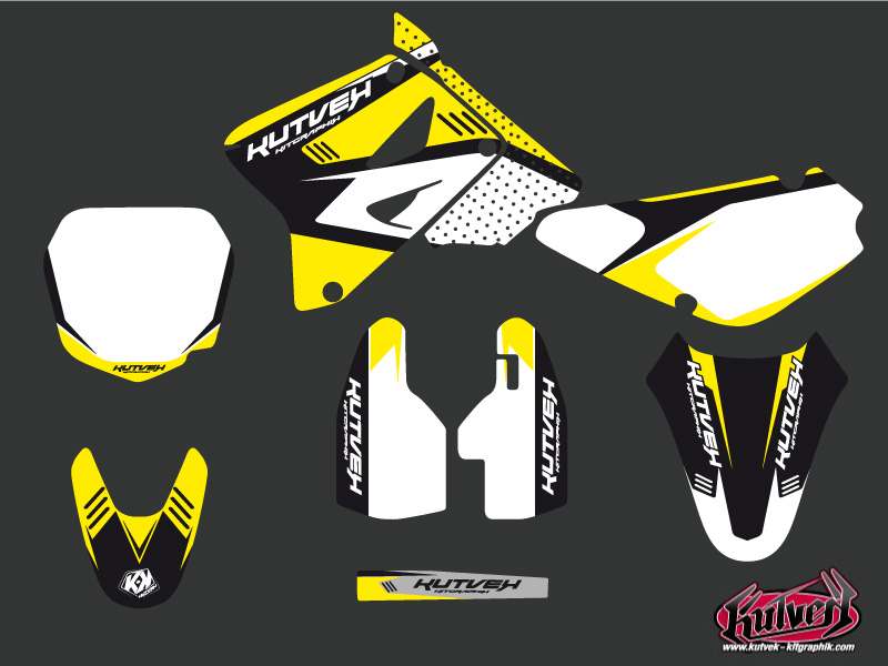 Offer you now for your Suzuki 85 RM Dirt Bike a graphic kit on the colors and brand name of CHRONO Black.