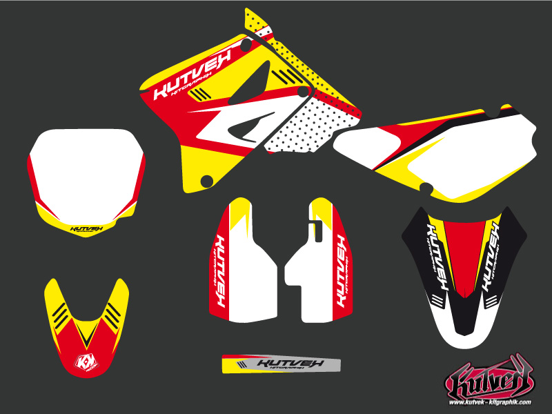 Offer you now for your Suzuki 85 RM Dirt Bike a graphic kit on the colors and brand name of CHRONO Red.