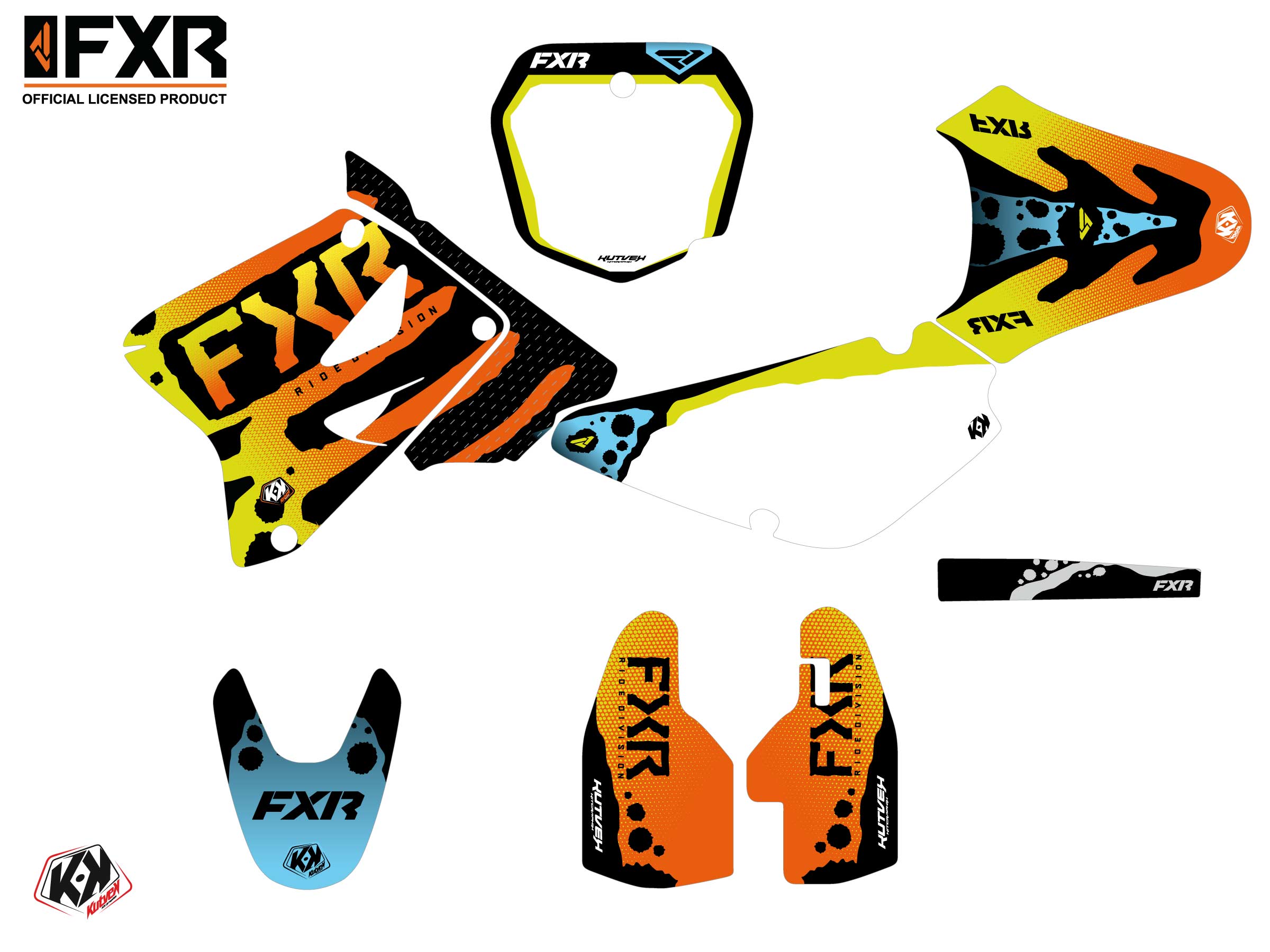 Offer you now for your Dirt Bike SUZUKI RM 85 a graphic kit on the colors of FXR DART FROG design.