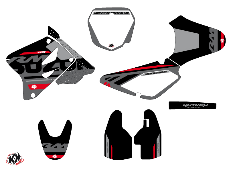Offer you now for your Suzuki 85 RM Dirt Bike a graphic kit on the colors and brand name of GRADE Black.