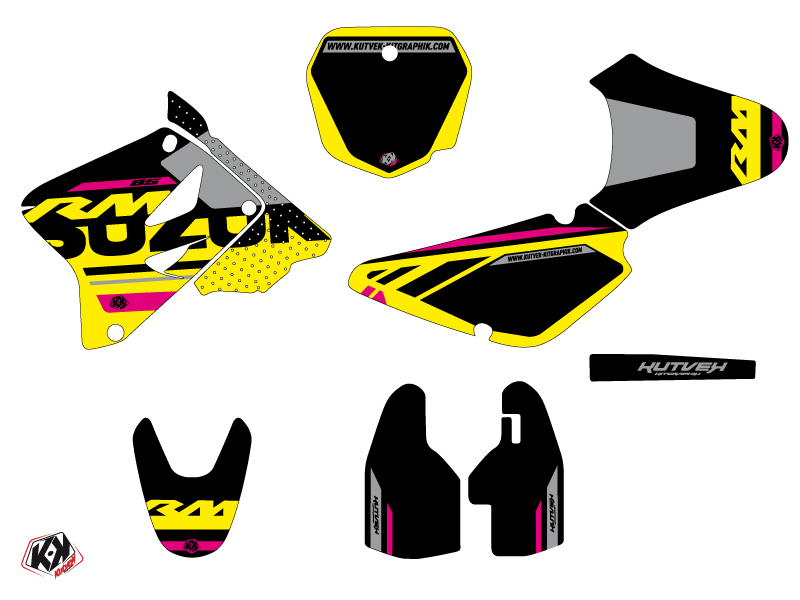 Offer you now for your Suzuki 85 RM Dirt Bike a graphic kit on the colors and brand name of GRADE Pink.