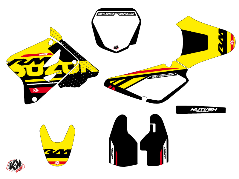 Offer you now for your Suzuki 85 RM Dirt Bike a graphic kit on the colors and brand name of GRADE Red.