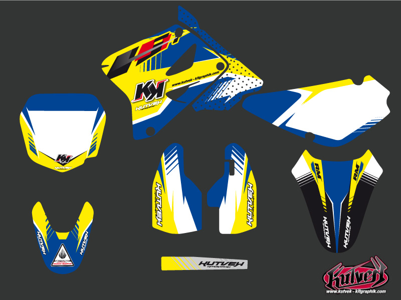 Offer you now for your Suzuki 85 RM Dirt Bike a graphic kit on the colors and brand name of PULSAR Blue.