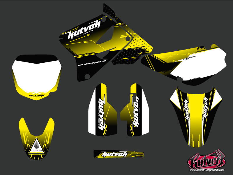 Offer you now for your Suzuki 85 RM Dirt Bike a graphic kit on the colors and brand name of SLIDER.