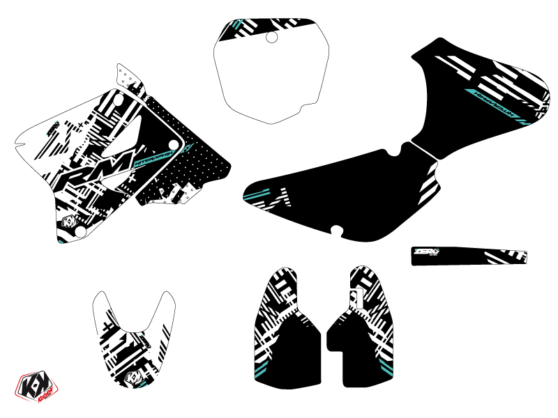 Offer you now for your Suzuki 85 RM Dirt Bike a graphic kit on the colors and brand name of ZERO Turquoise.