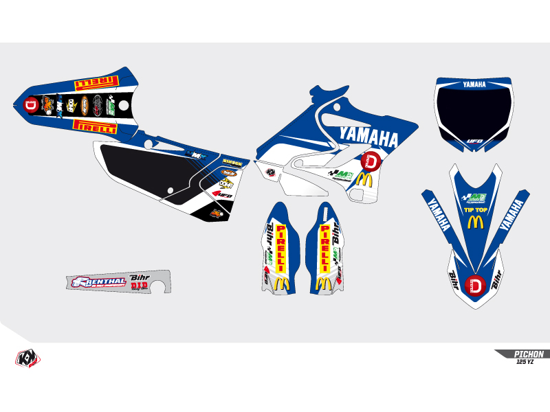 The graphic kit REPLICA TEAM PICHON 2015 allow you to adopt the colors of the Pichon Team on your Dirt Bike Yamaha 450 YZF.