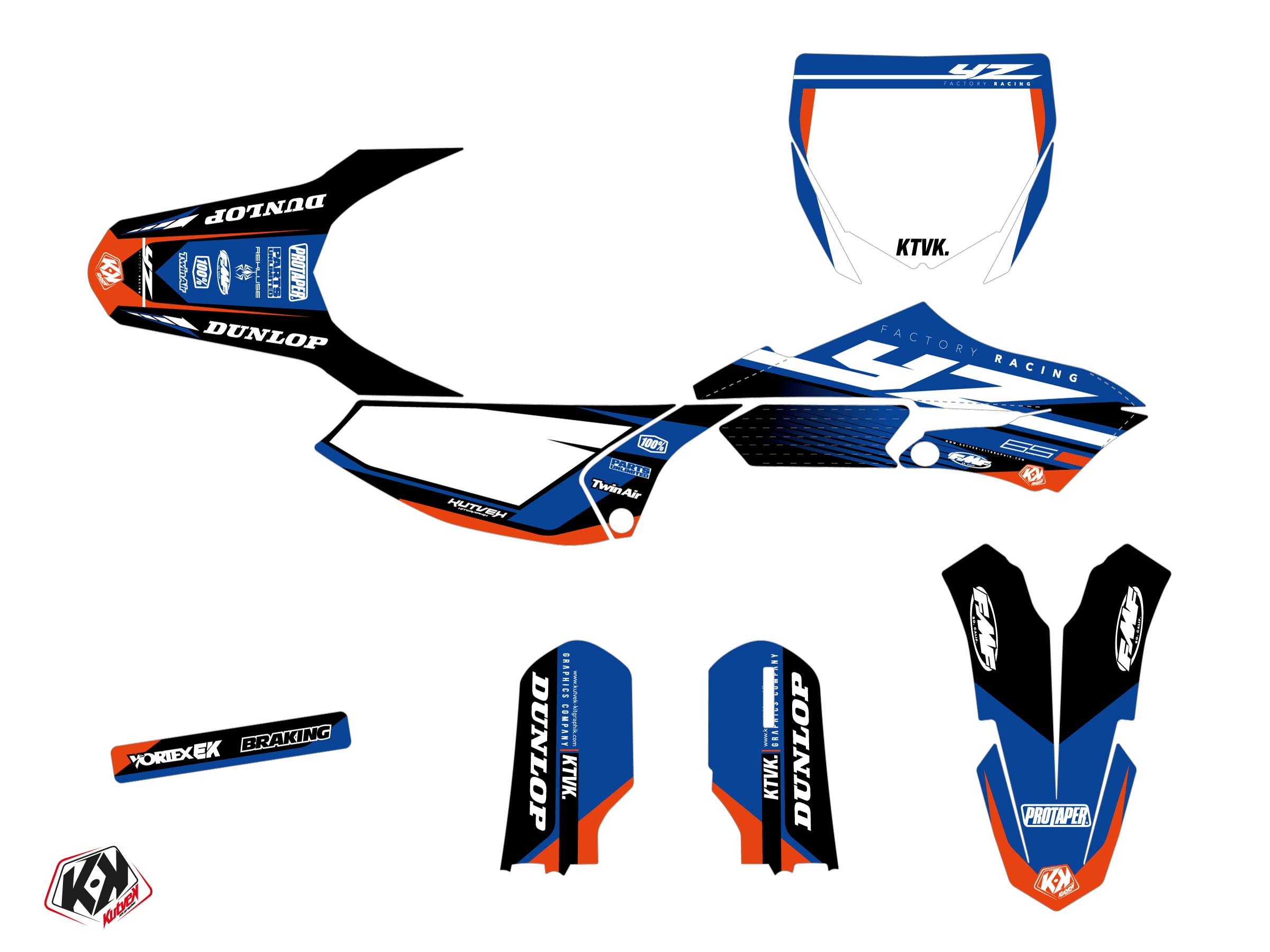 Offer you now for your Dirt Bike Yamaha 65 YZ a graphic kit on the colors of the Shok Blue.The race number on the vehicle picture is for example, it will not be printed on the graphic kit. To add your number, choose the "Name+Number" option.