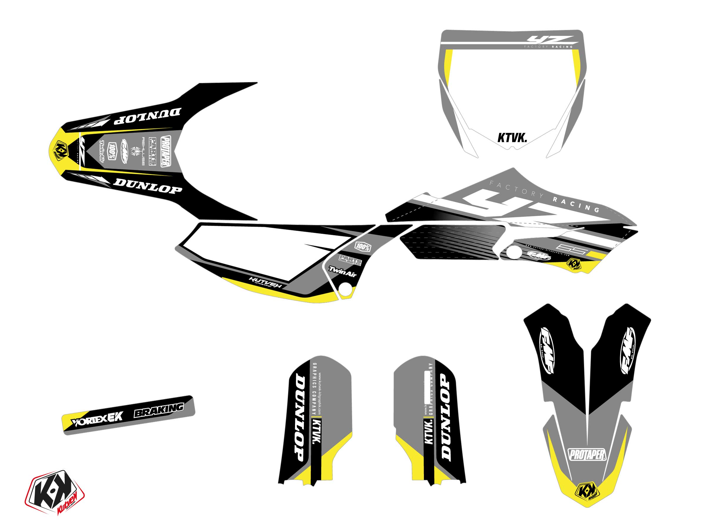 Offer you now for your Dirt Bike Yamaha 65 YZ a graphic kit on the colors of the Shok Grey.The race number on the vehicle picture is for example, it will not be printed on the graphic kit. To add your number, choose the "Name+Number" option.