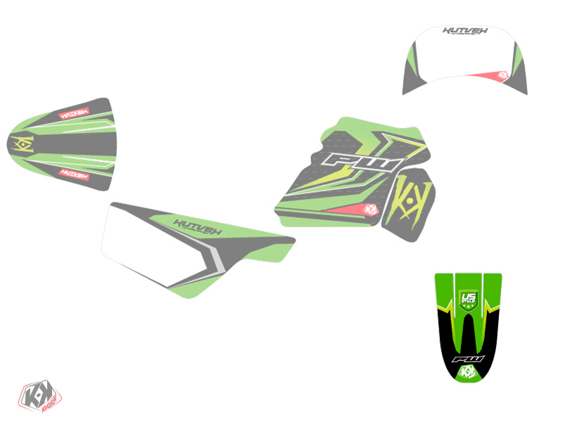 With the YAMAHA PW 50 US STYLE Green graphic kit, give your child the chance to ride in the colors of the stars of the US Dirt Bike ! You can also customize the US STYLE graphic kit with your name + number and/or logos.