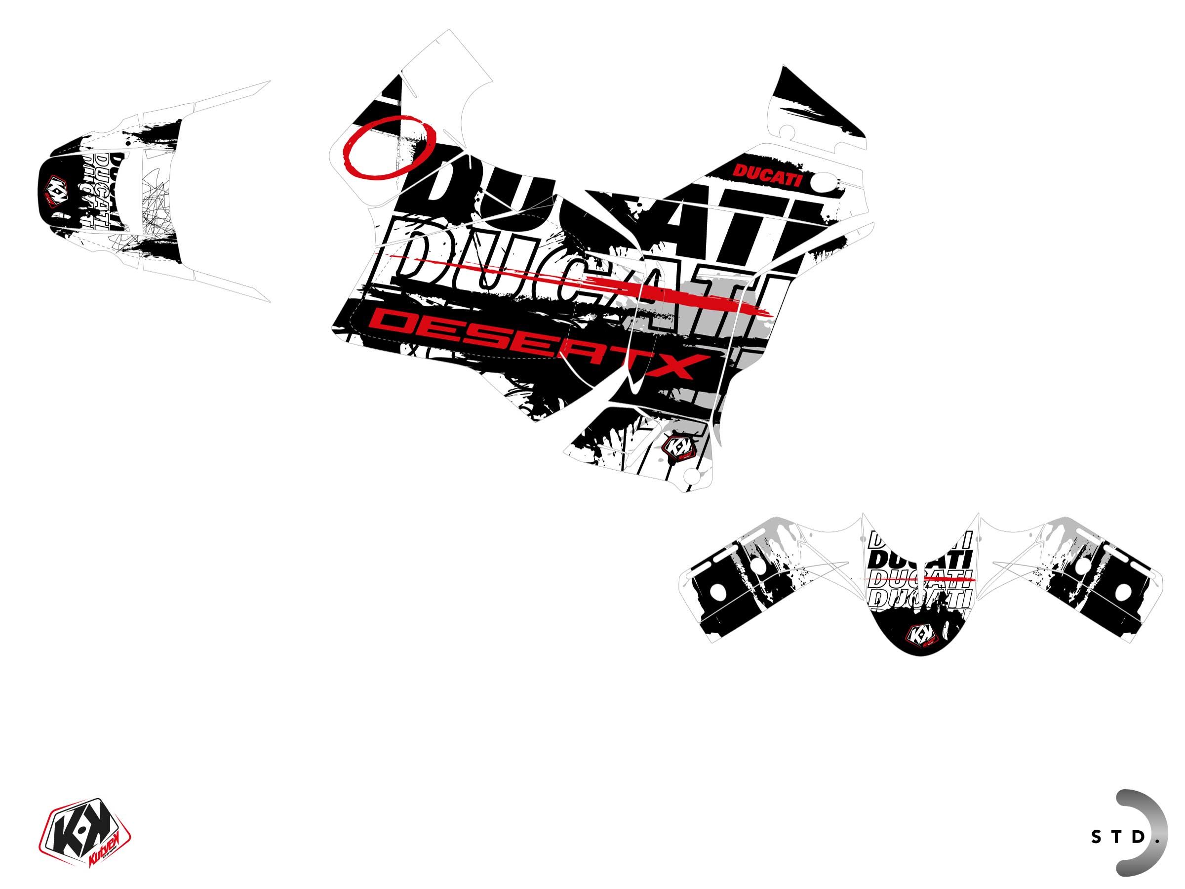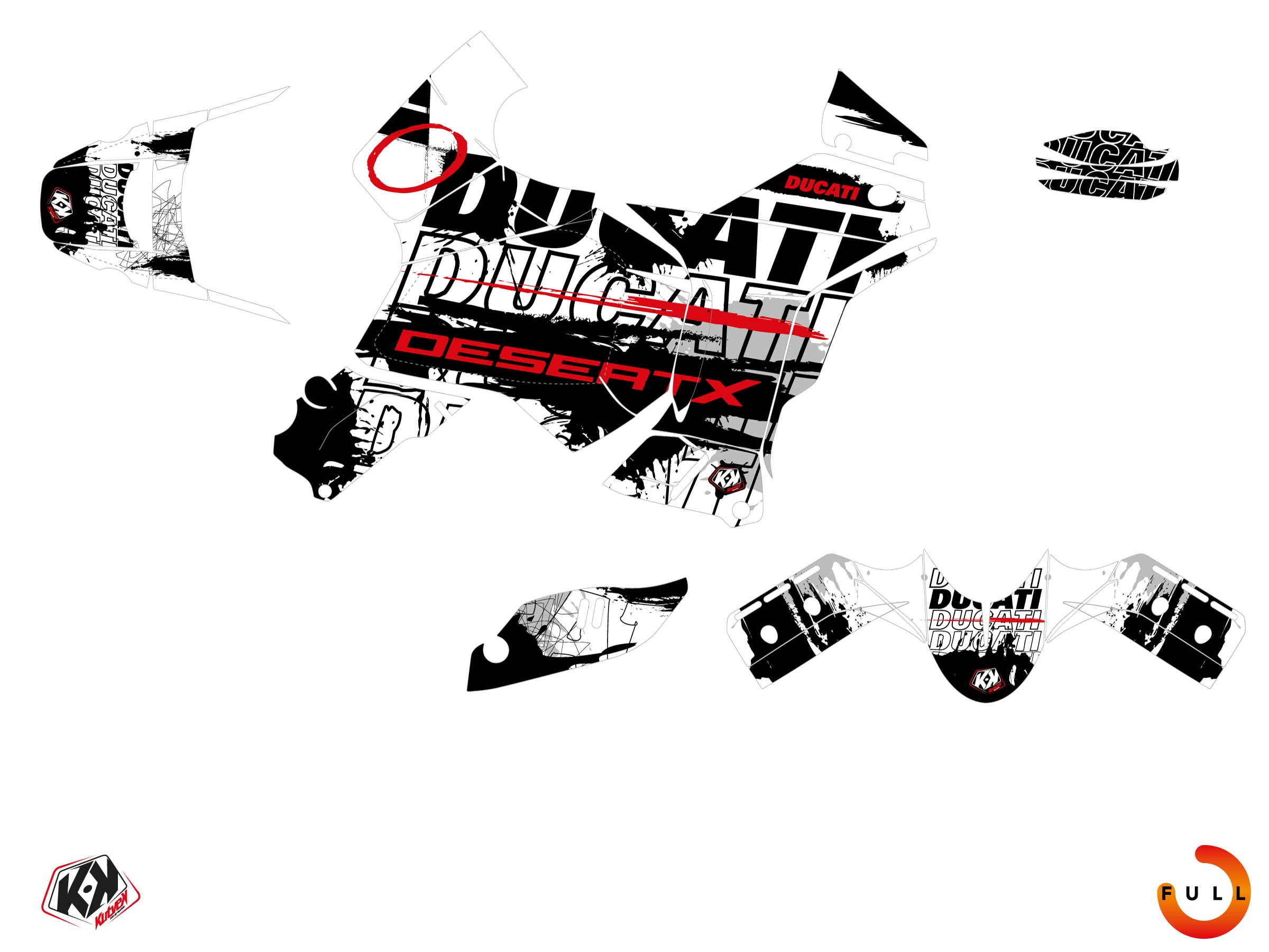 Offer you now for your Street Bike DUCATI DESERT X a graphic kit on the colors of SCRIBBLE White design.