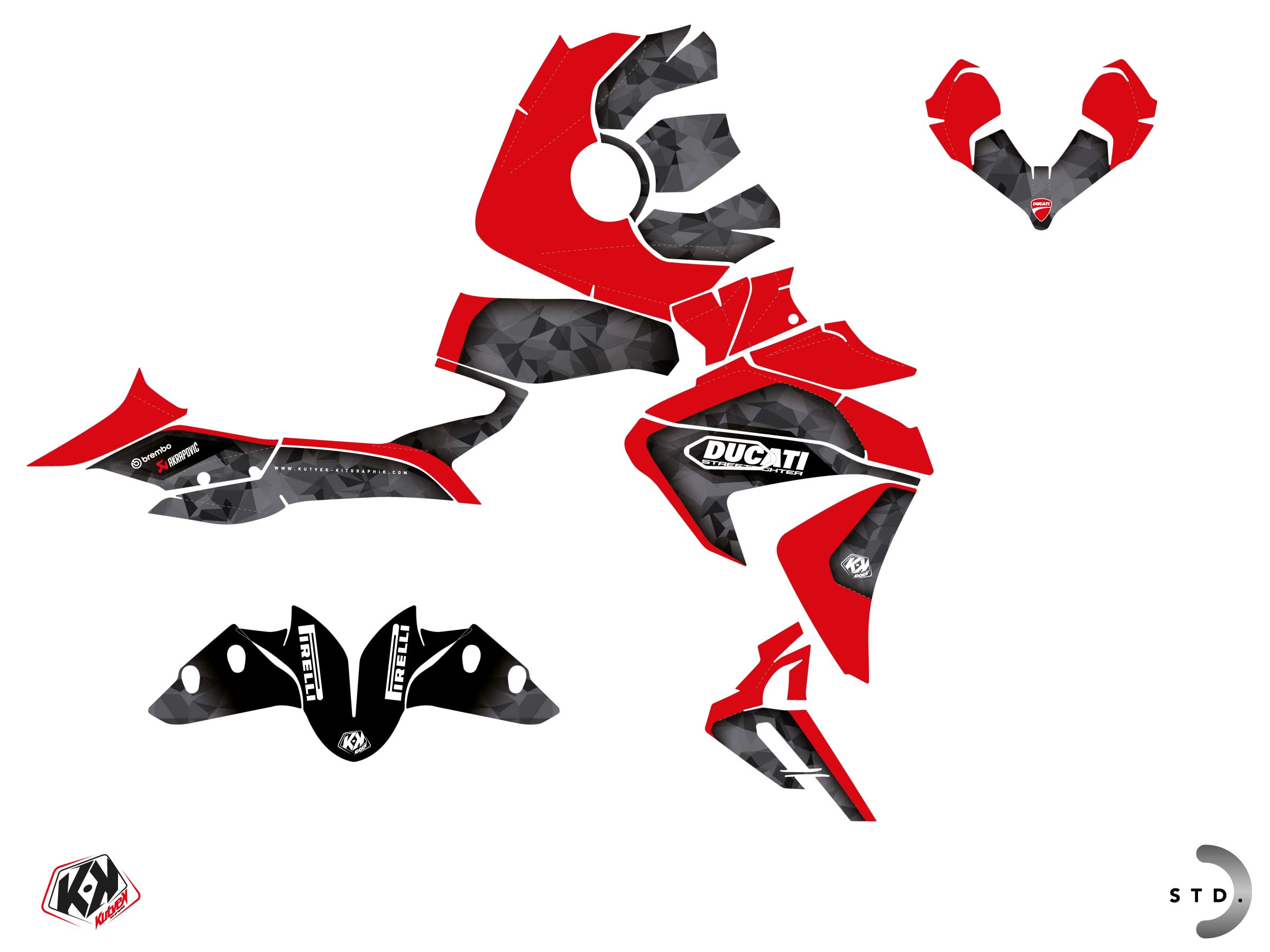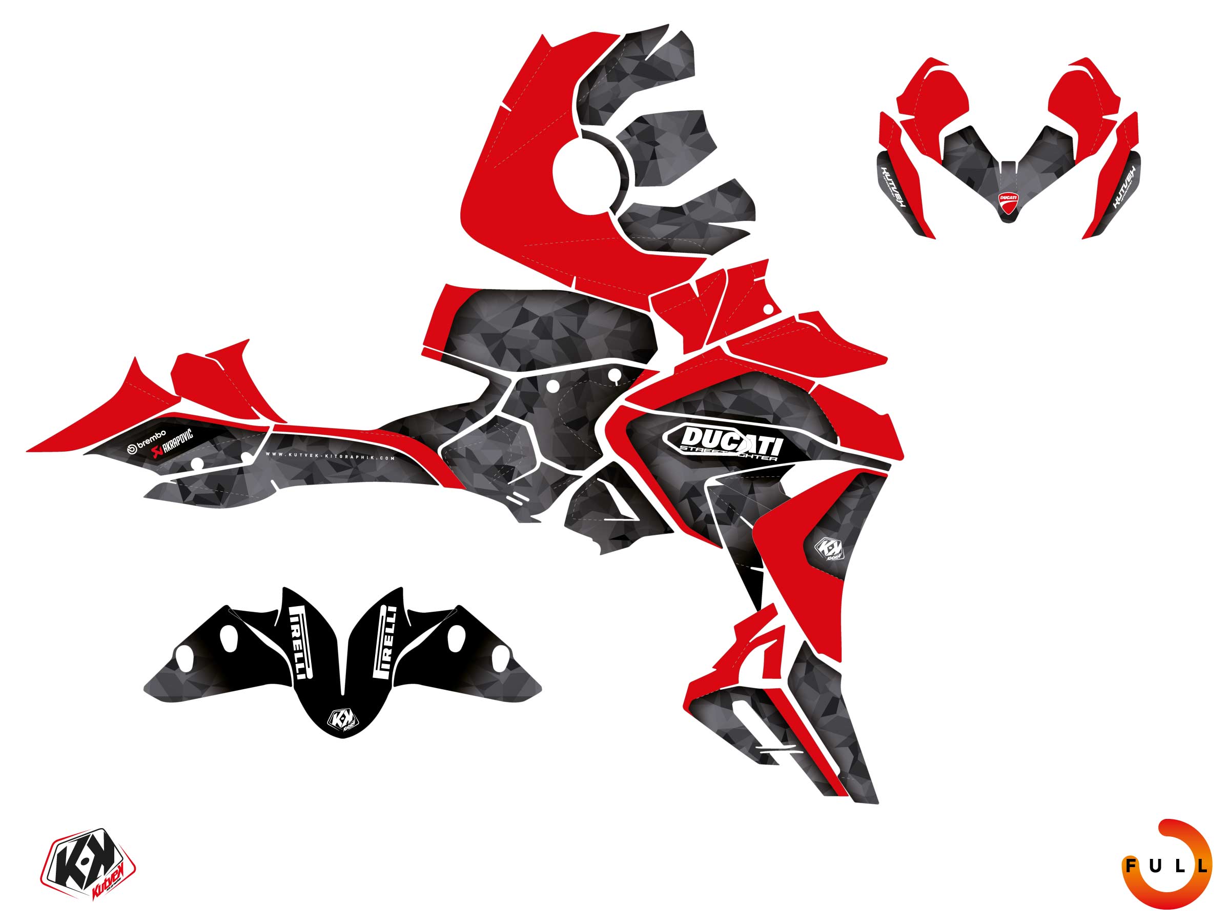 The DUCATI STREETFIGHTER 890 V2 graphic kit includes :