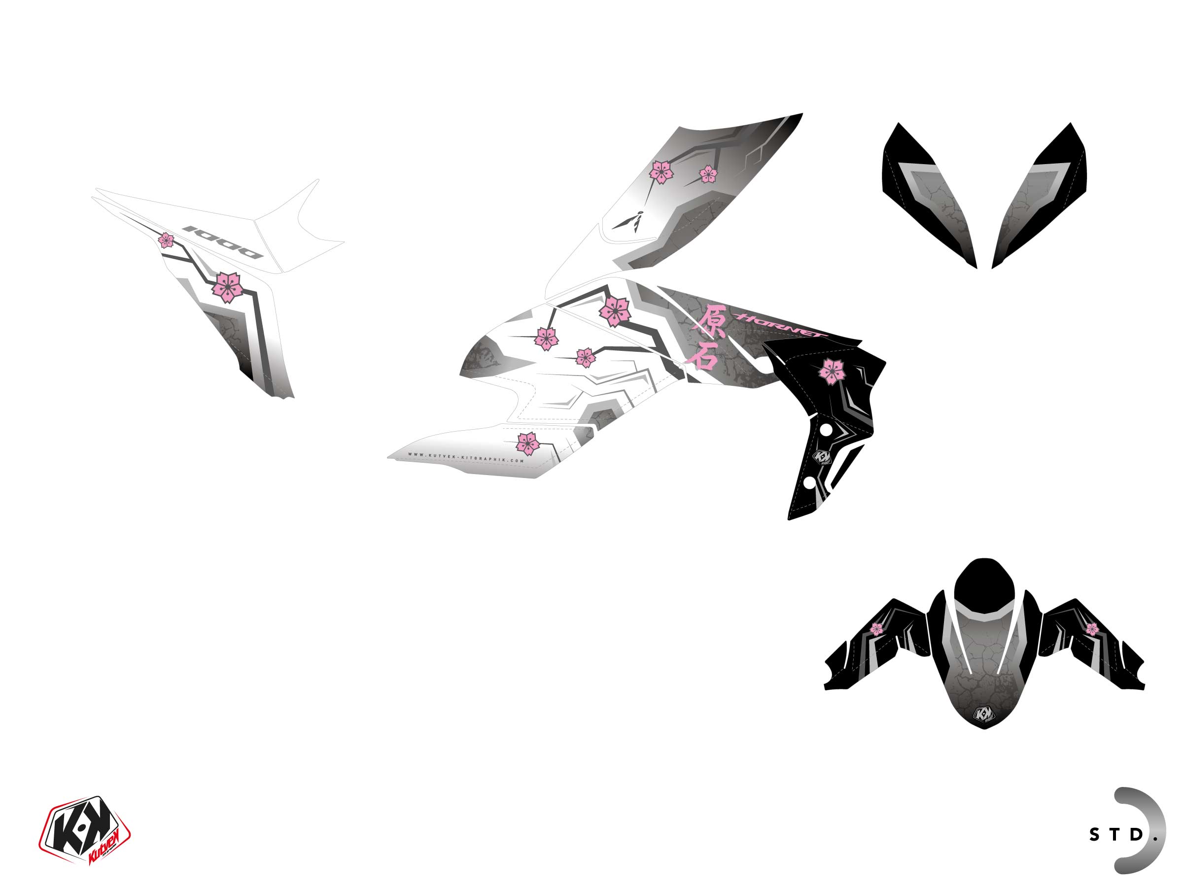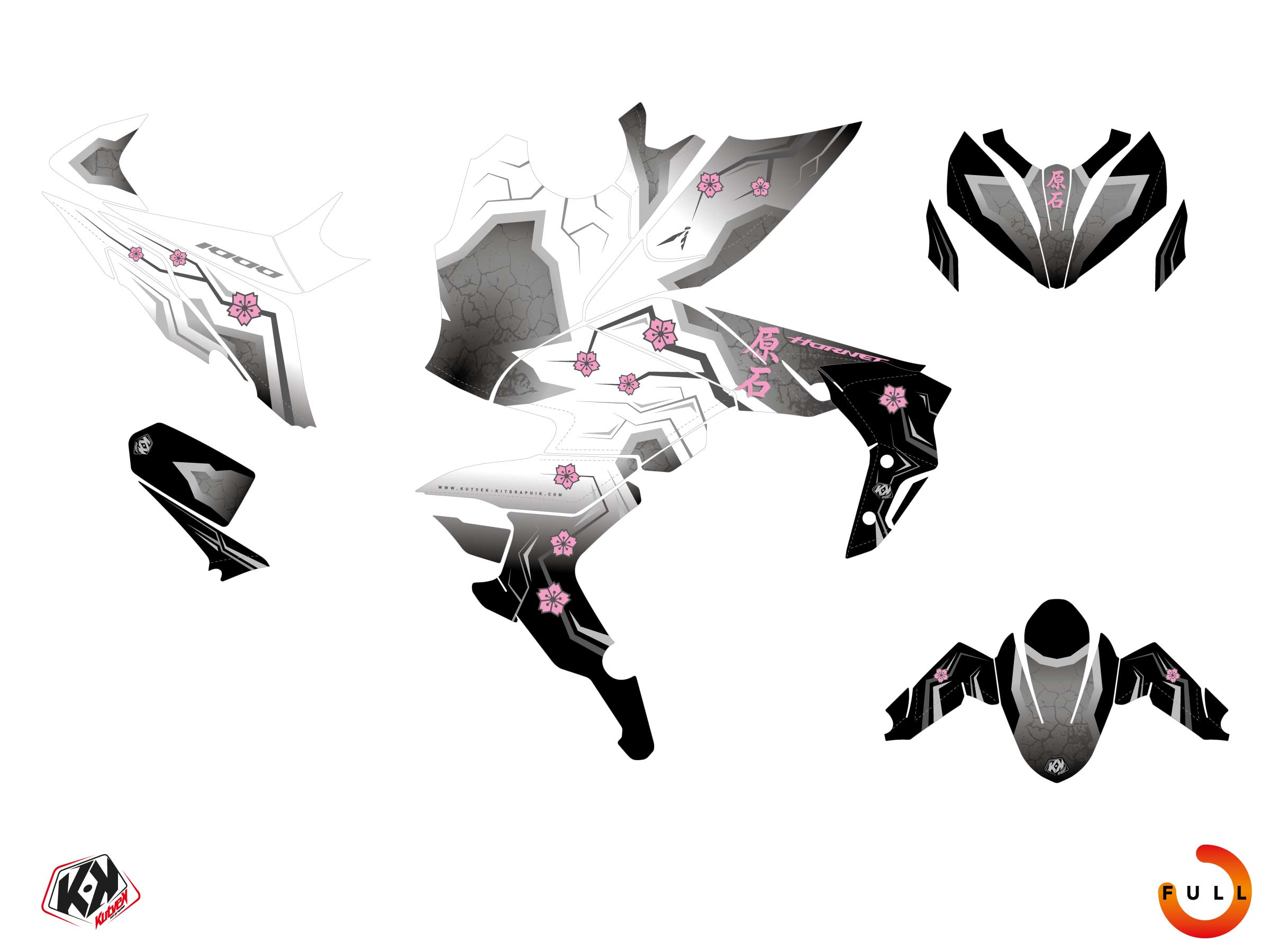 Offer you now for your Street Bike HONDA CB 1000 HORNET a graphic kit on the colors of HANAMI White design.