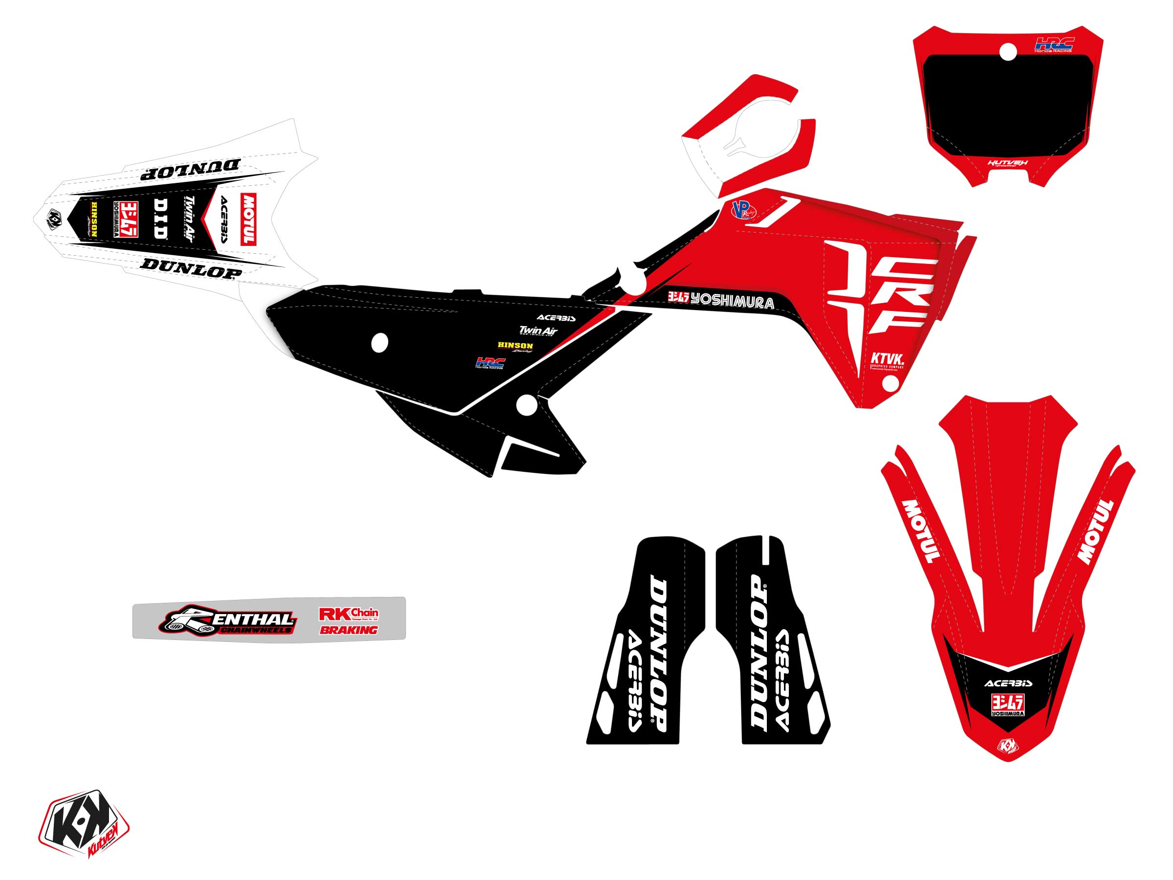 The HONDA CRF 250 R graphic kit includes :
