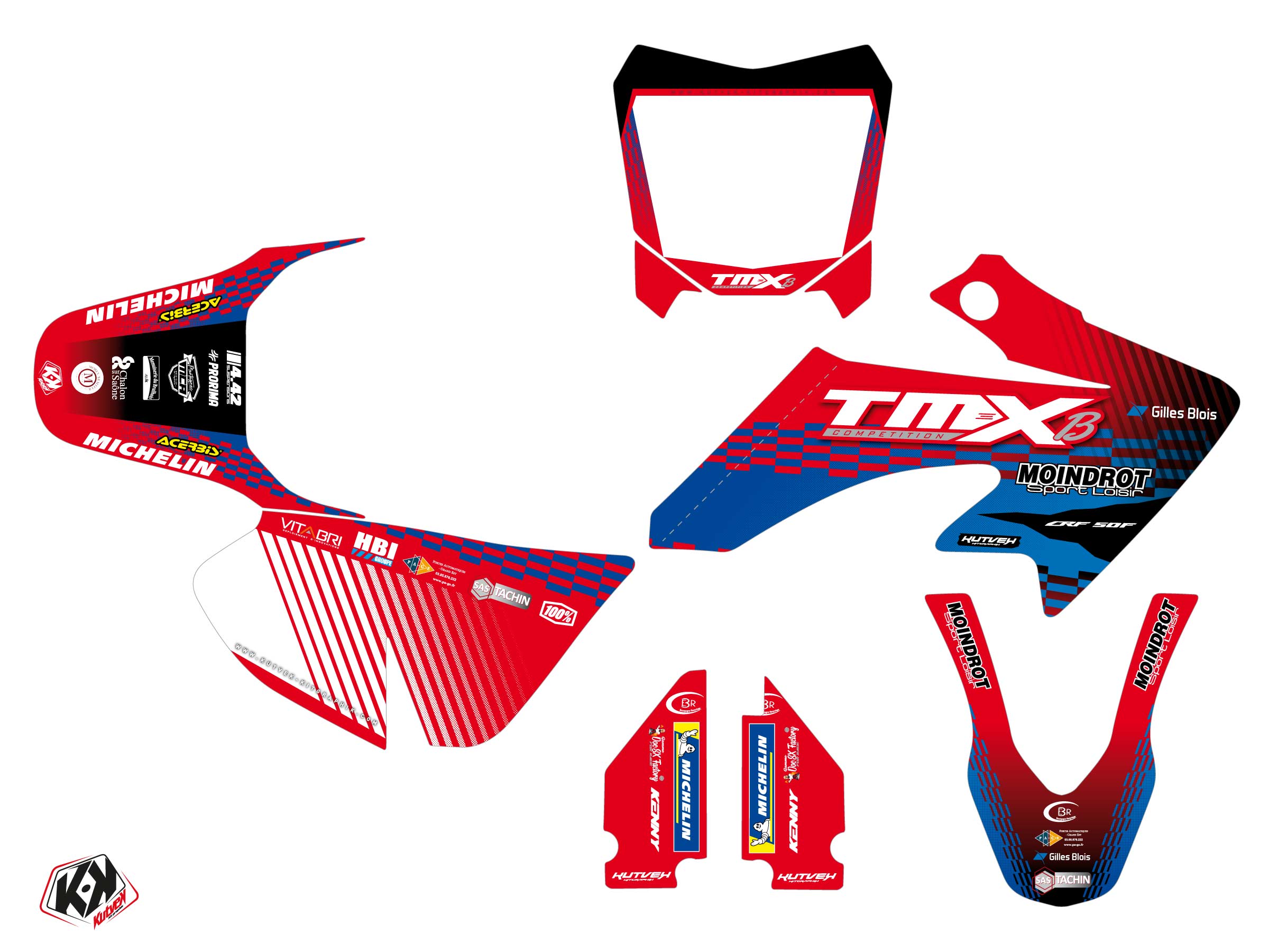 Offer you now for your Dirt Bike HONDA CRF 50 a graphic kit on the colors of REPLICA TEAM TMX K25 Red-Blue design.