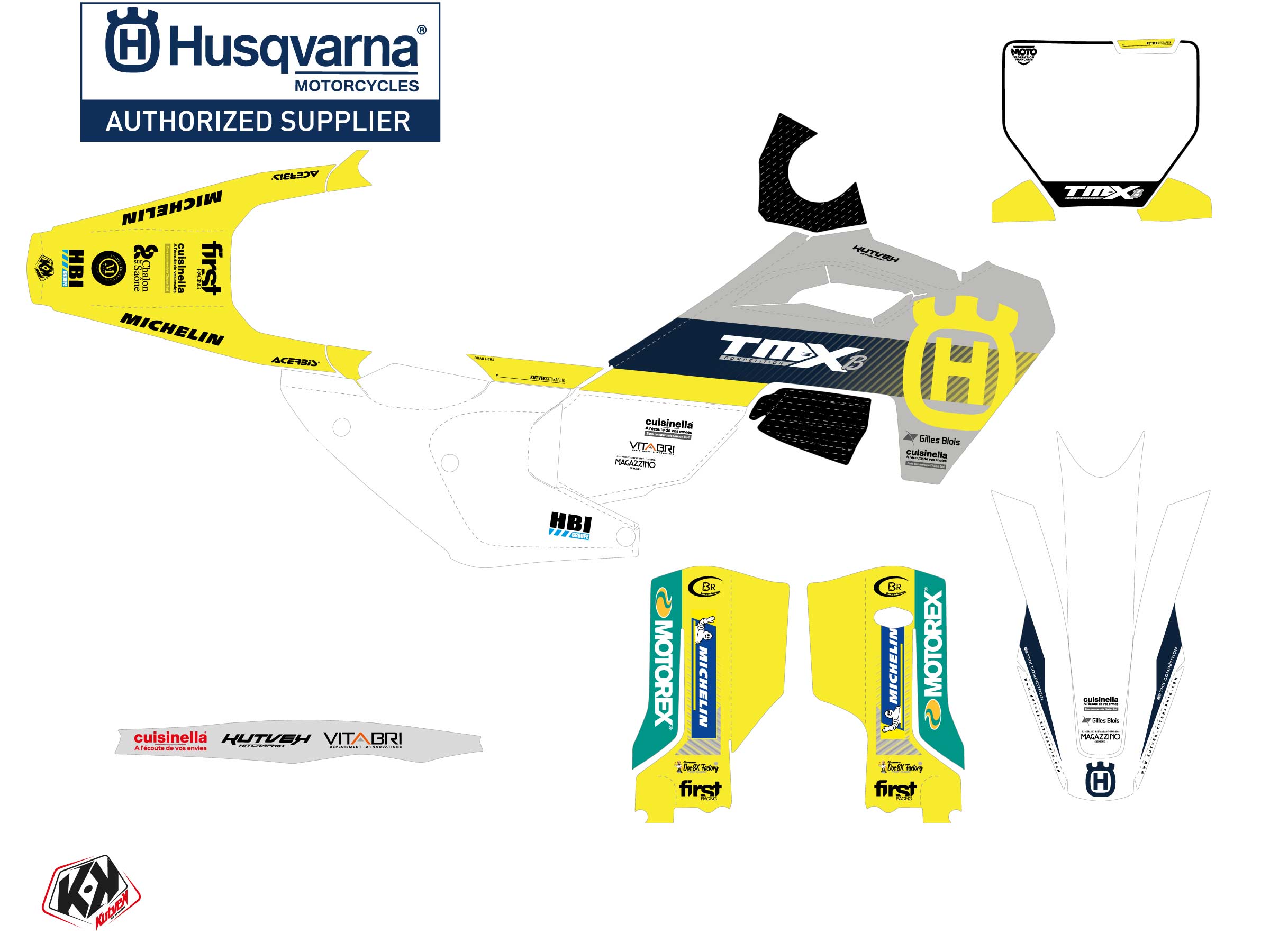 Offer you now for your Dirt Bike HUSQVARNA FC 450 a graphic kit on the colors of REPLICA TEAM TMX K24 design.
