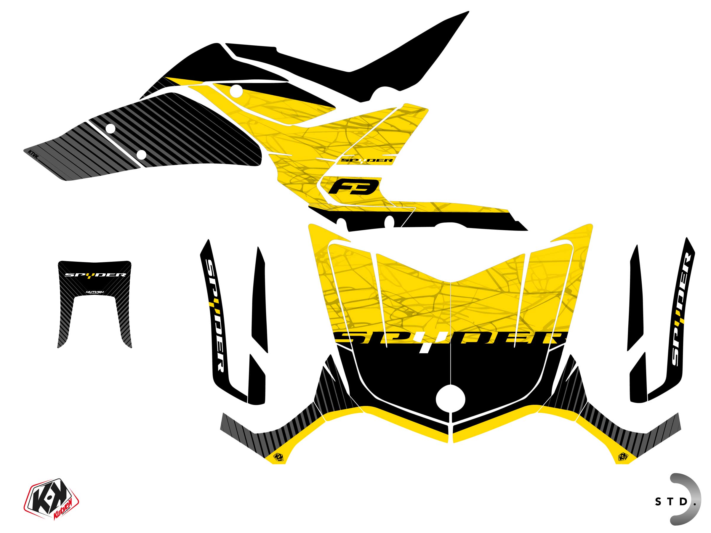 Offer you now for your Roadster CAN-AM SPYDER F3 a graphic kit on the colors of SNARE Yellow design.
