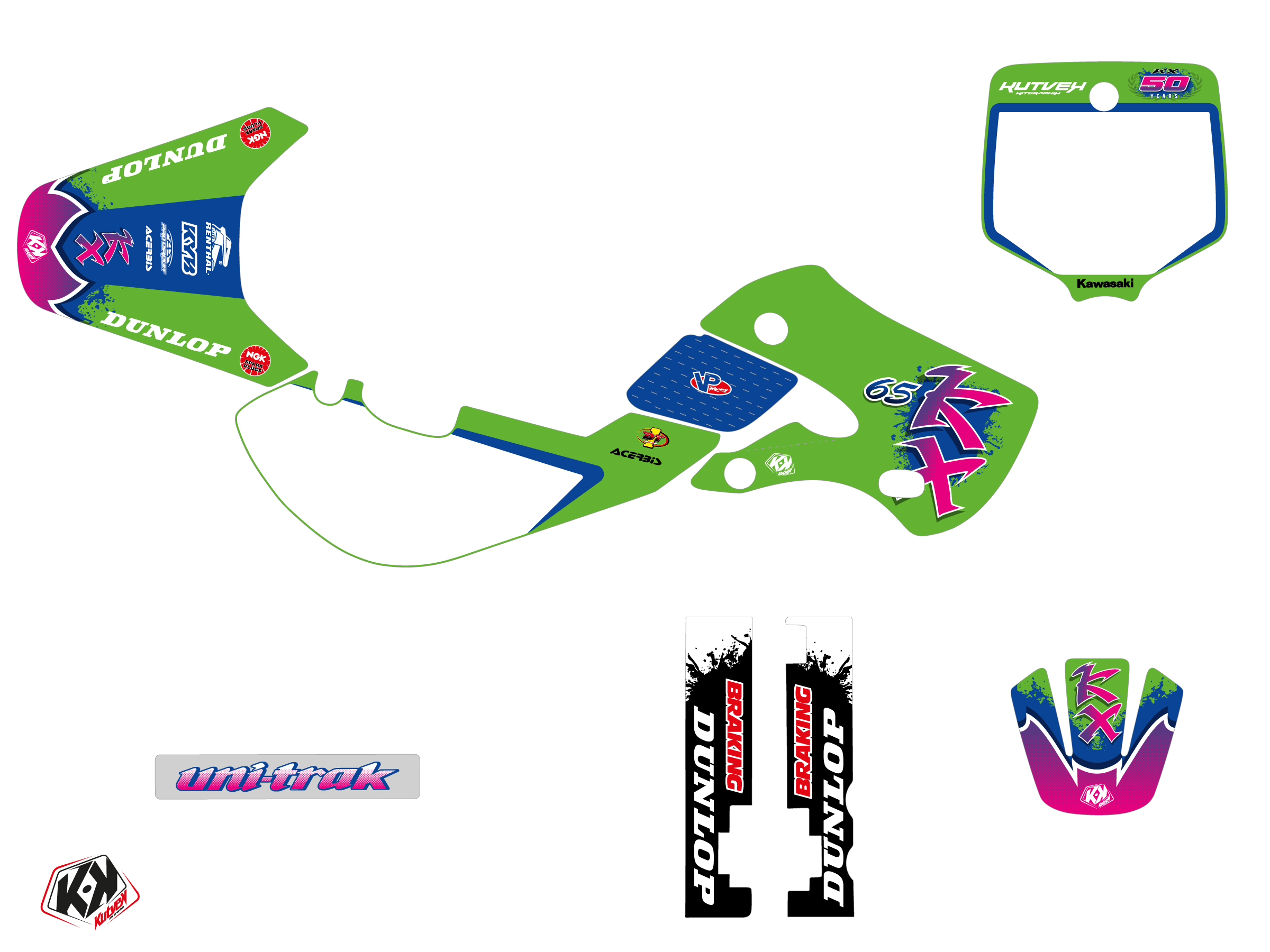 Offer you now for your Dirt Bike KAWASAKI KX 65 a graphic kit on the colors of FIFTY Green design.