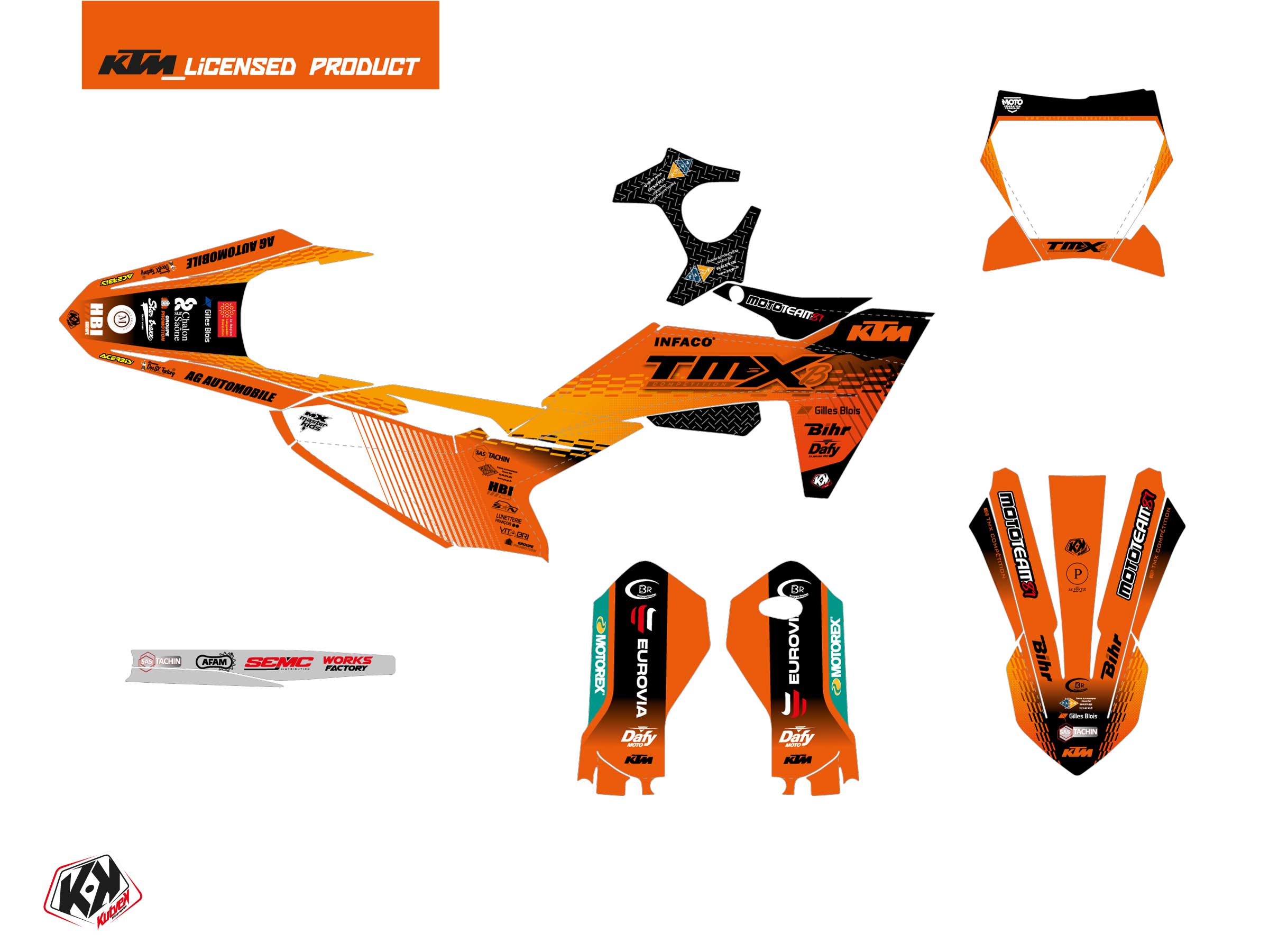 Offer you now for your Dirt Bike KTM SX 50 a graphic kit on the colors of REPLICA TEAM TMX K25 Orange design.