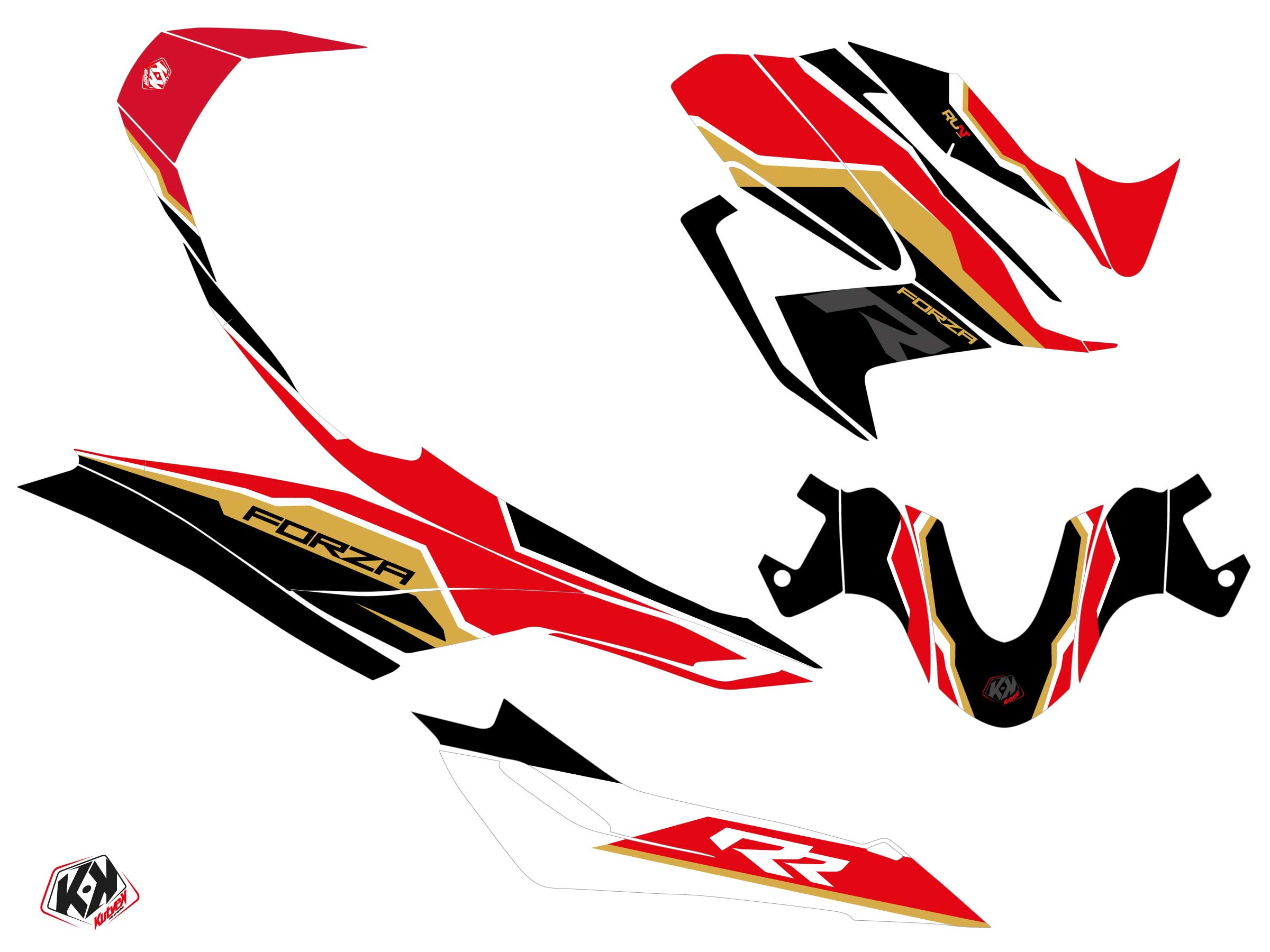Offer you now for your Honda Forza 350 Maxiscooter a graphic kit on the colors and brand name of RUN black.