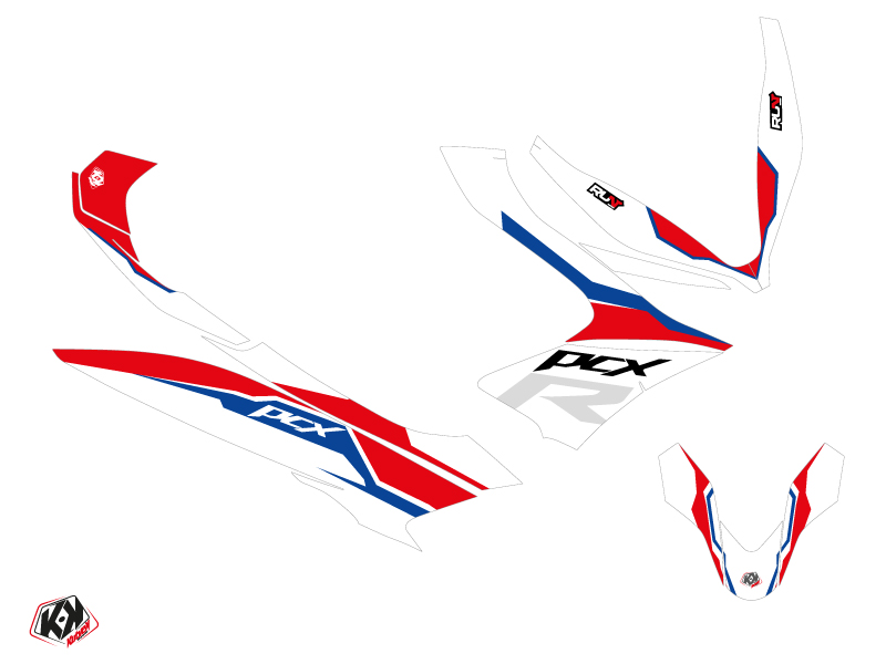 Offer you now for your Honda PCX 125 Maxiscooter a graphic kit on the colors and brand name of RUN White.