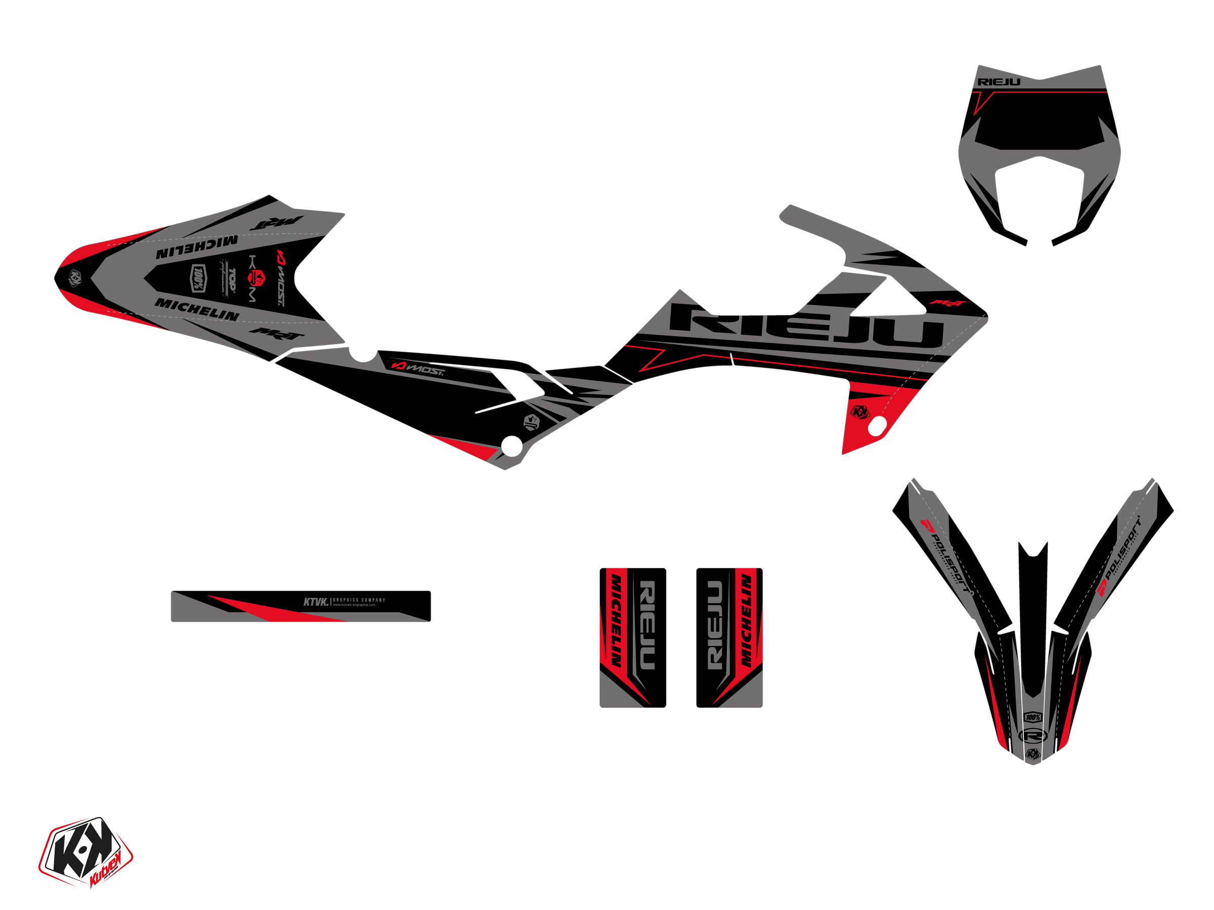 The RIEJU MRT 50 graphic kit includes :