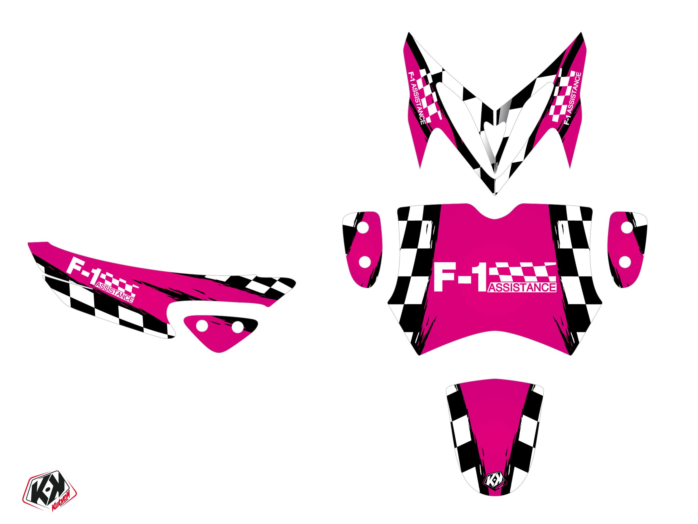 Offer you now for your MBK Stunt Scooter a graphic kit on the colors and brand name of F1 ASSISTANCE Pink.