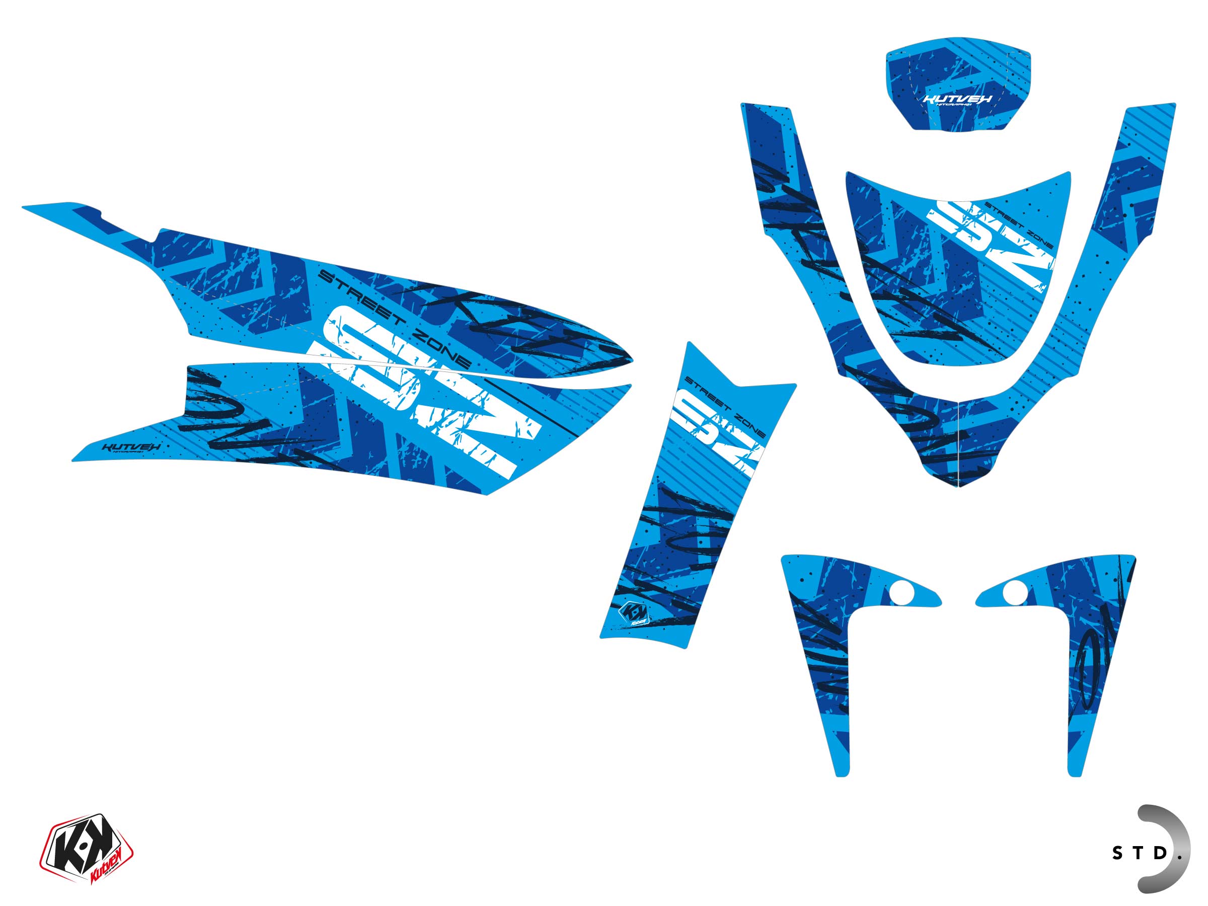 The PEUGEOT STREETZONE 50 4T NAKED graphic kit includes :