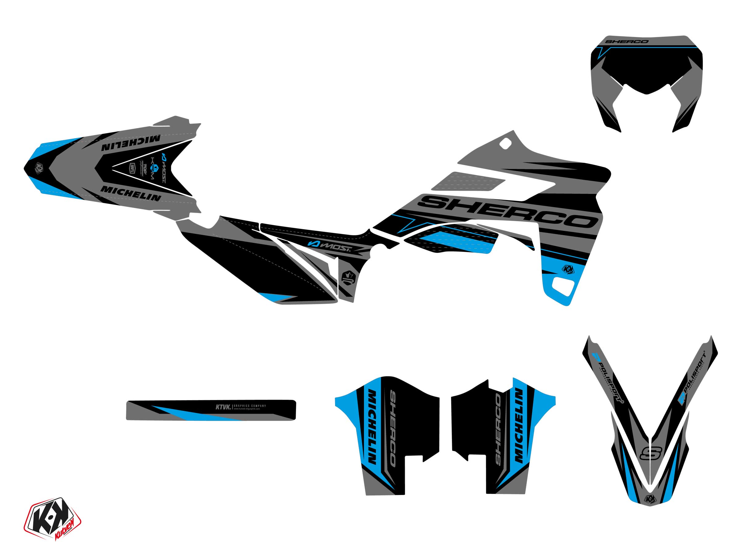 Offer you now for your 50CC SHERCO SM RS a graphic kit on the colors of RIDGE Black-Blue design.