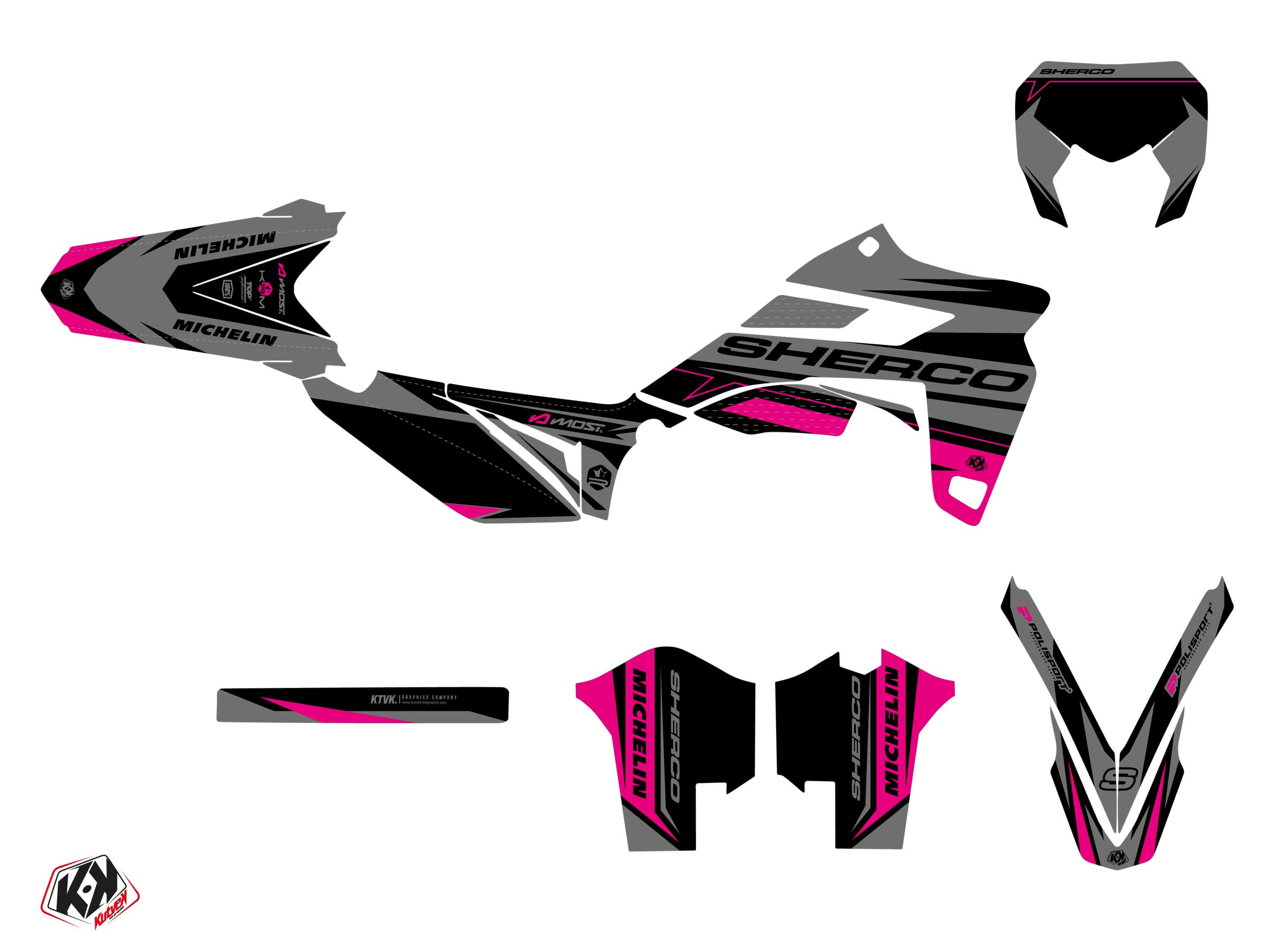 Offer you now for your 50CC SHERCO SM RS a graphic kit on the colors of RIDGE Black-Pink design.
