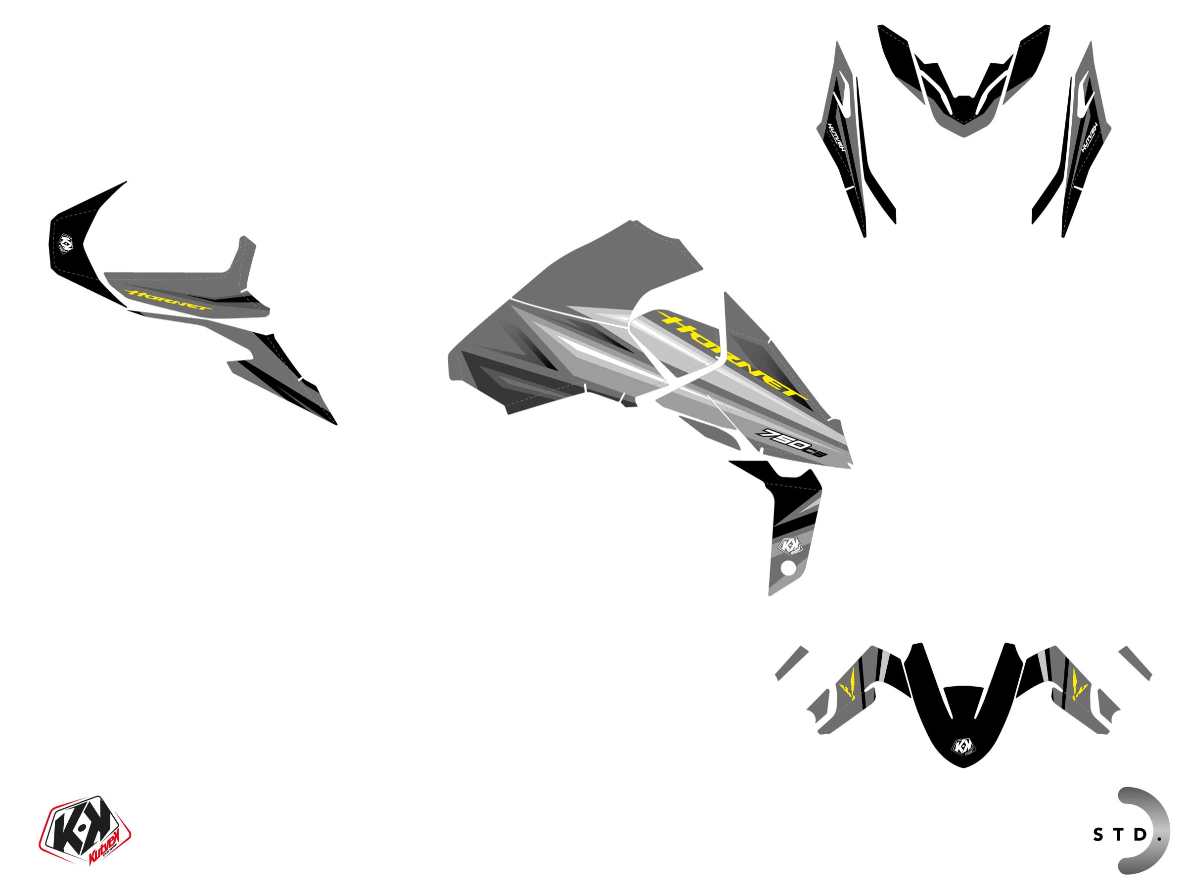 Offer you now for your Street Bike HONDA CB 750 HORNET a graphic kit on the colors of Sword Grey design.