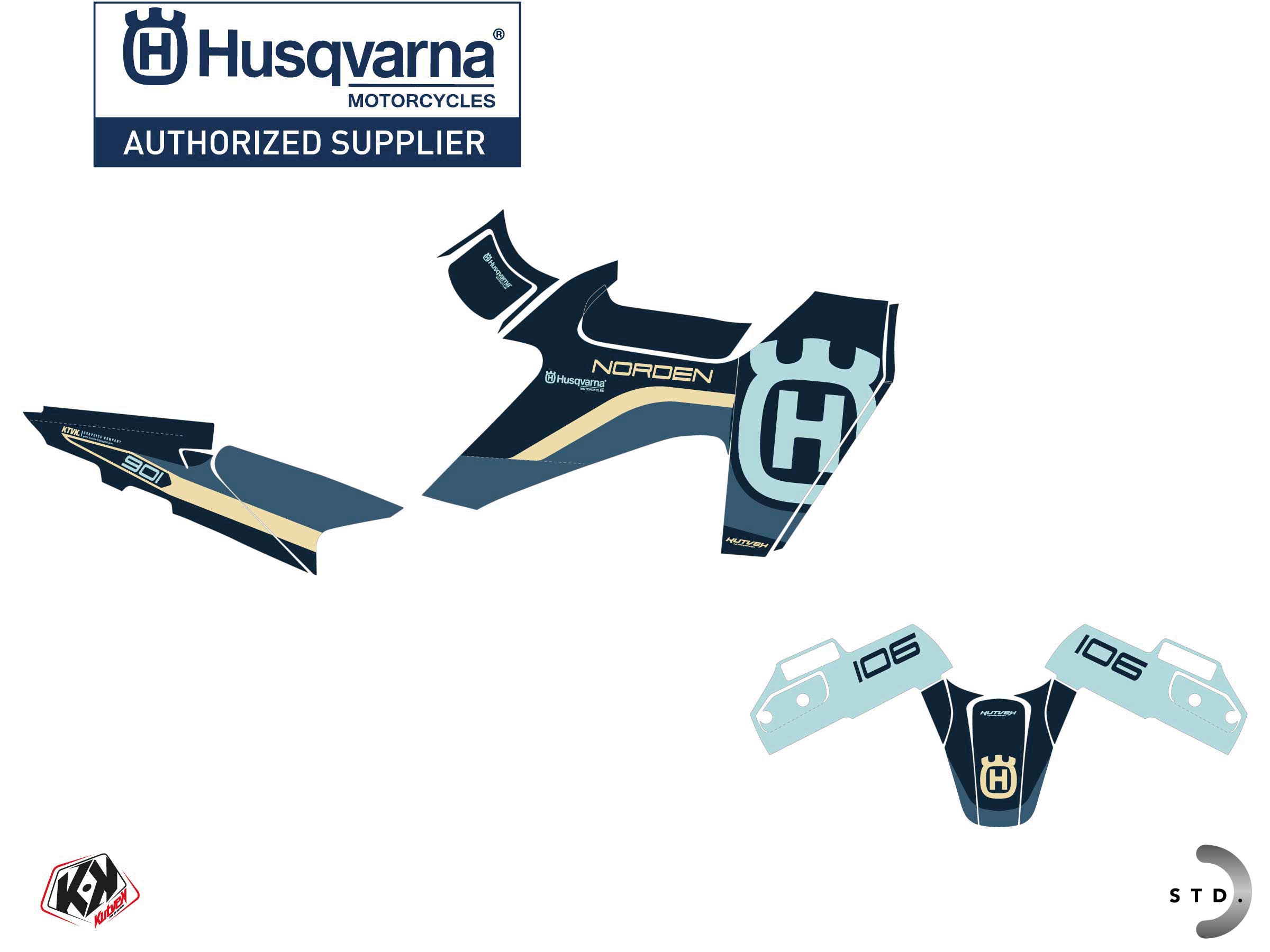 The HUSQVARNA NORDEN 901 graphic kit includes :