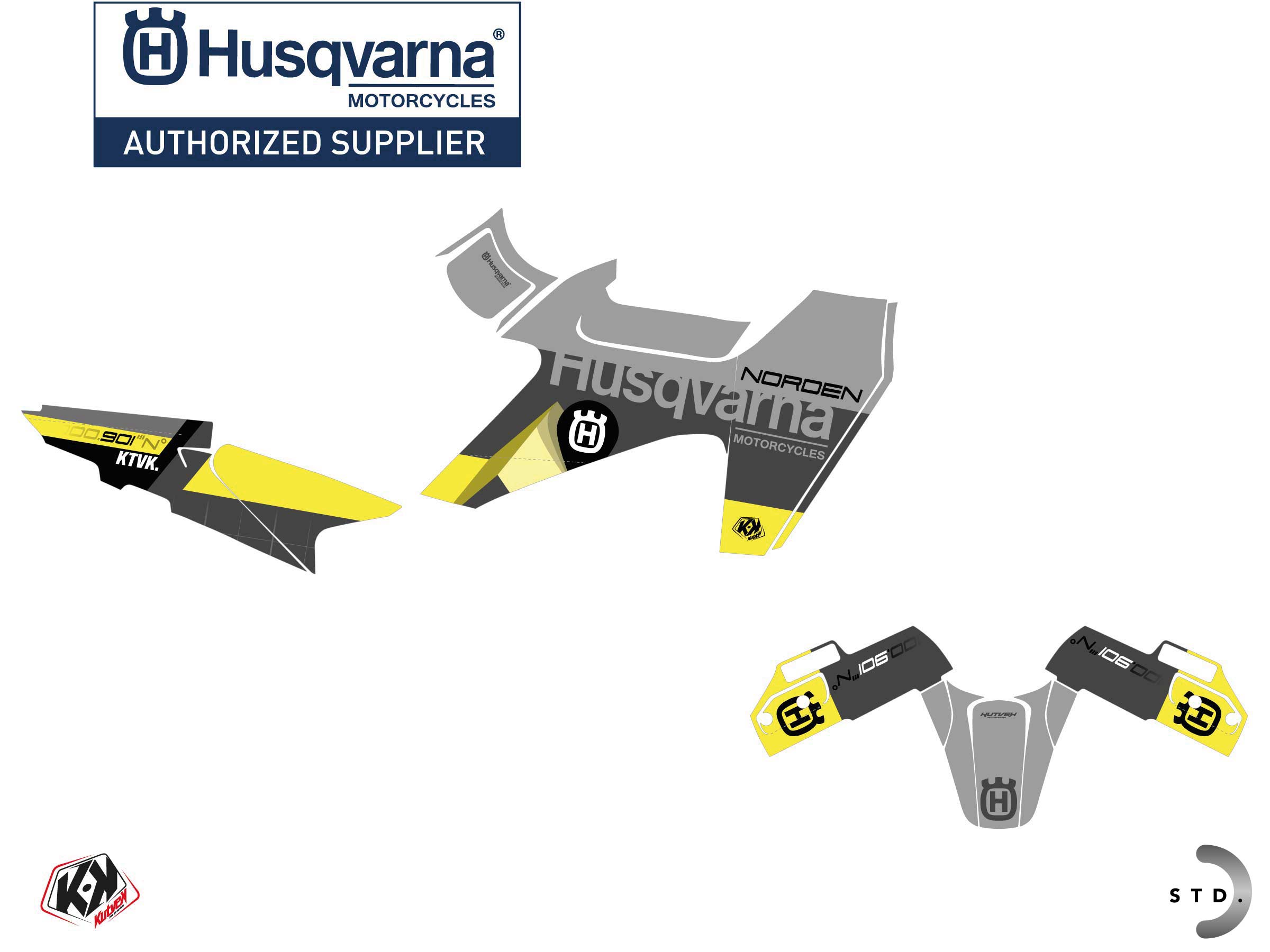 Offer you now for your Husqvarna Norden 901 Street Bike a graphic kit on the colors and brand name of Latitude Yellow.The seat cover option includes the installation (complex), so it will be necessary to send us the saddle. Once you have placed your order we will contact you to tell you how to proceed