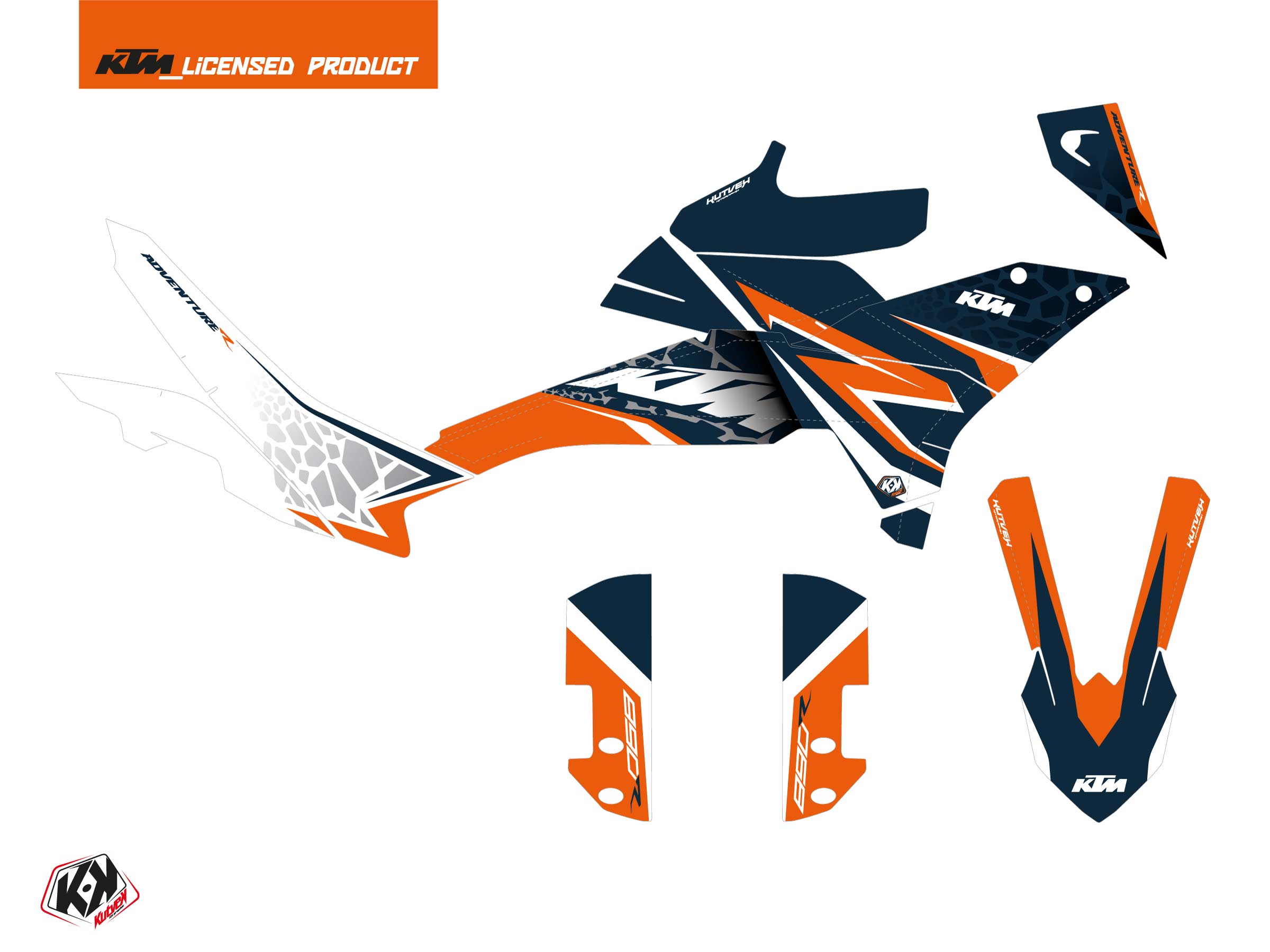 The KTM ADVENTURE 890 R graphic kit includes :