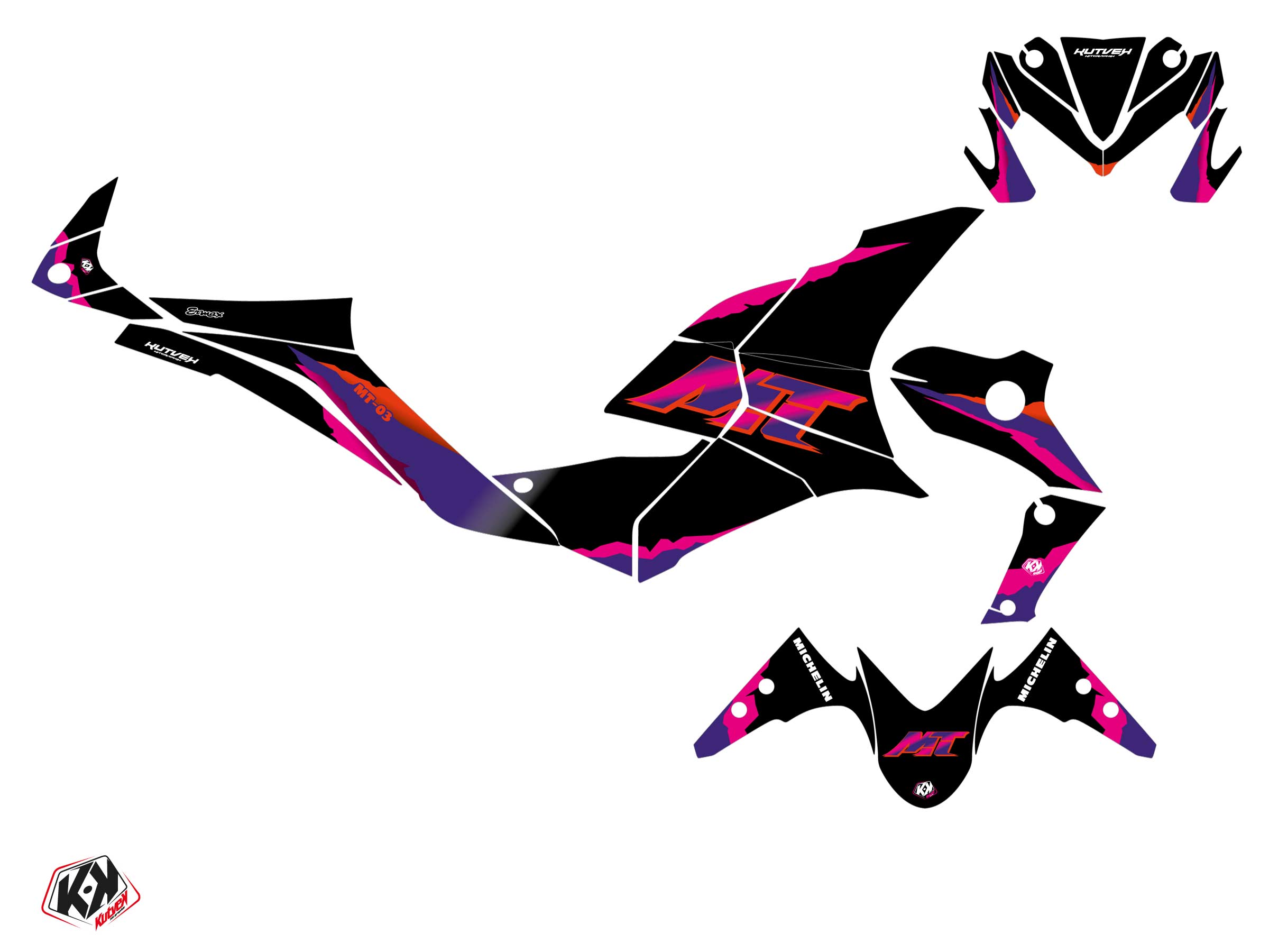 The YAMAHA MT 03 graphic kit includes :
