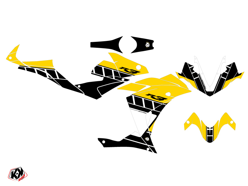 Offer you now for your Yamaha R3 Street Bike a graphic kit on the colors and brand name of VINTAGE Yellow.