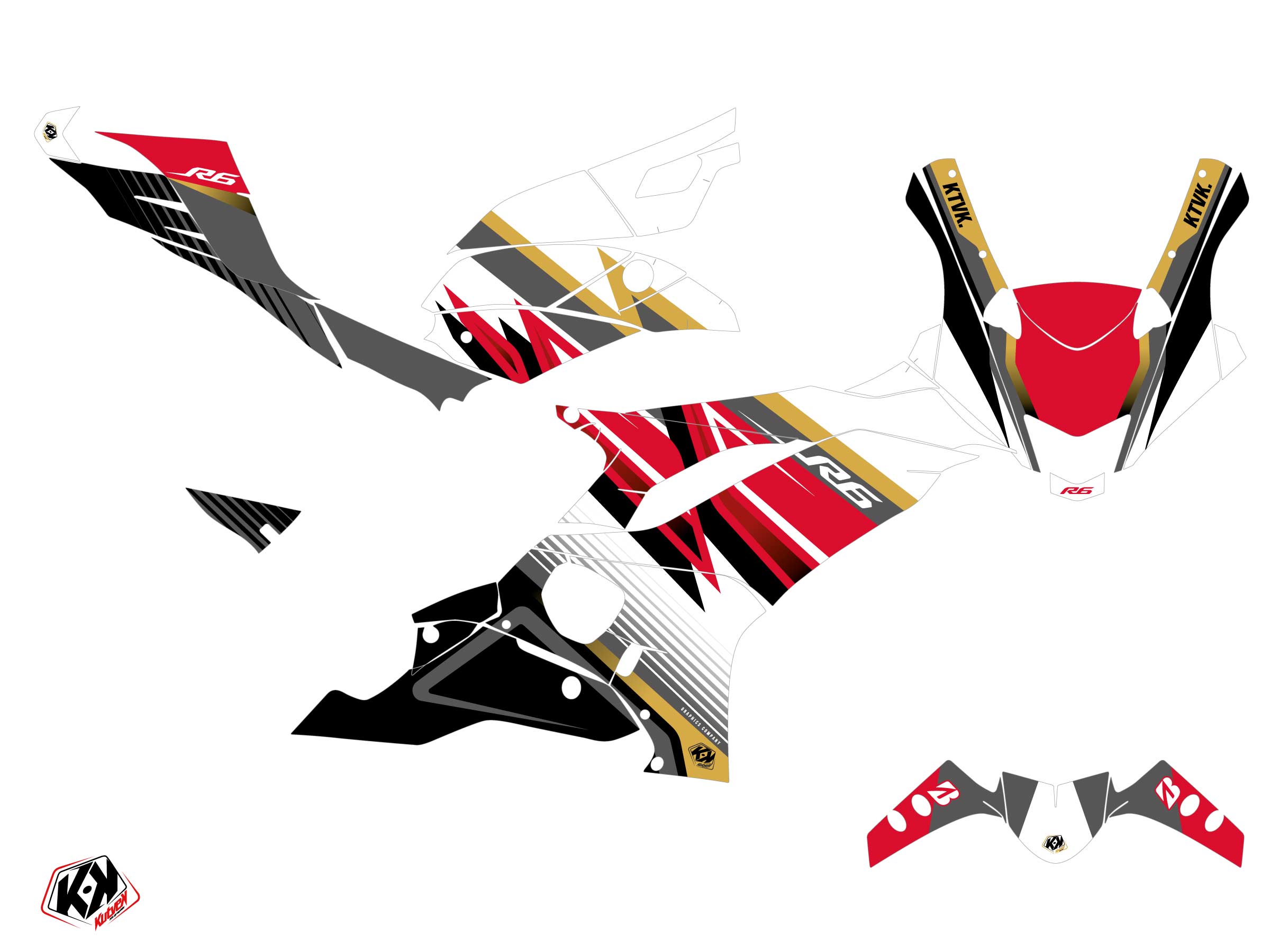 The YAMAHA R6 graphic kit includes :