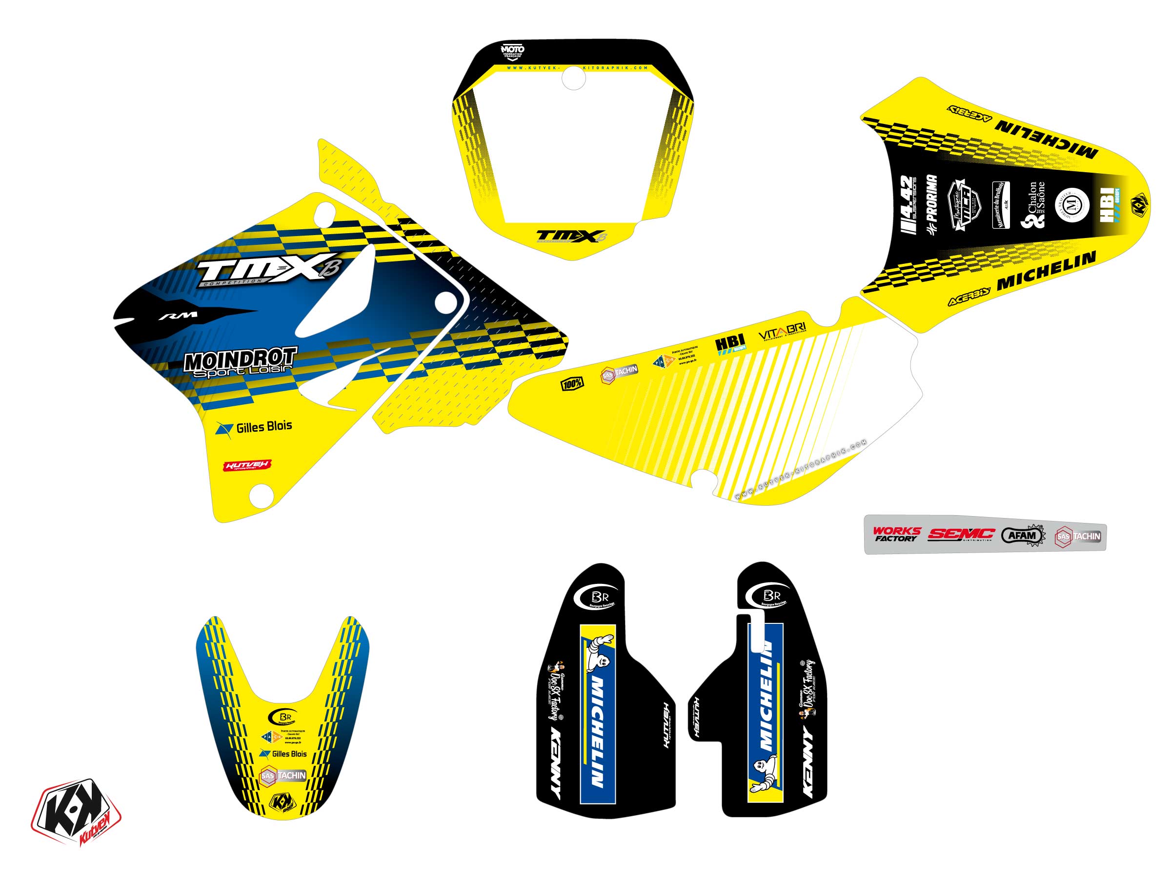 Offer you now for your Dirt Bike SUZUKI RM 85 a graphic kit on the colors of REPLICA TEAM TMX K25 Yellow design.