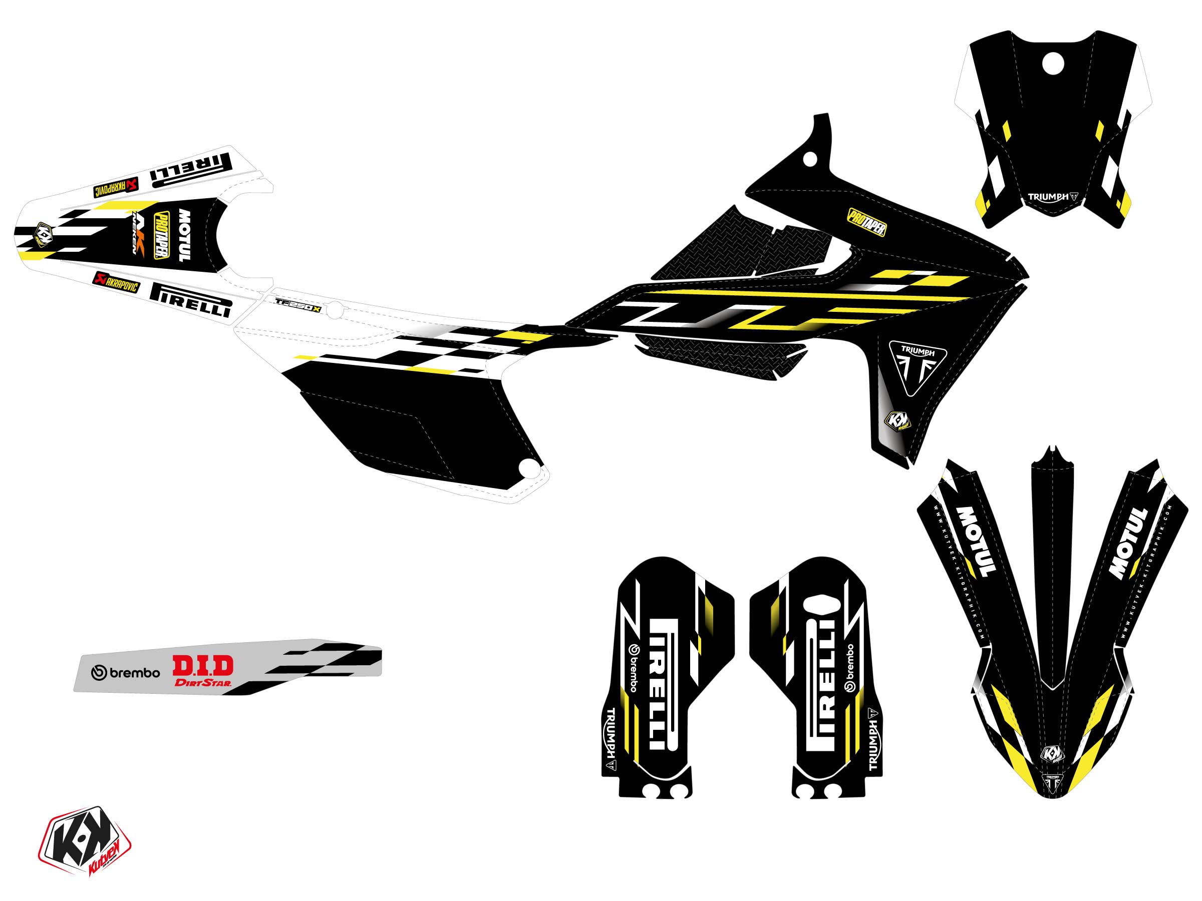 The TRIUMPH TF 250 X graphic kit includes :
