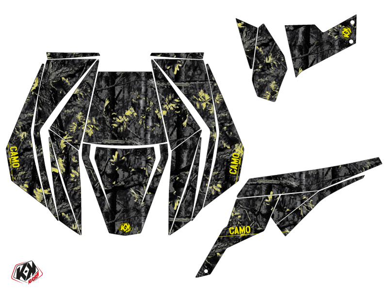 Offer you now for your Can Am Maverick UTV a graphic kit on the colors and brand name of CAMO Black Yellow.