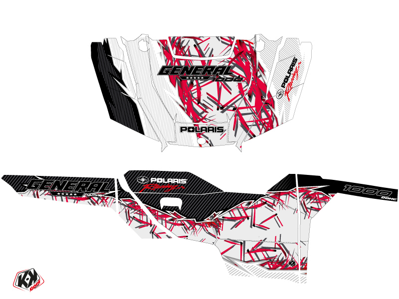 Offer you now for your Polaris GENERAL 1000 UTV a graphic kit on the colors and brand name of ACTION Red White.