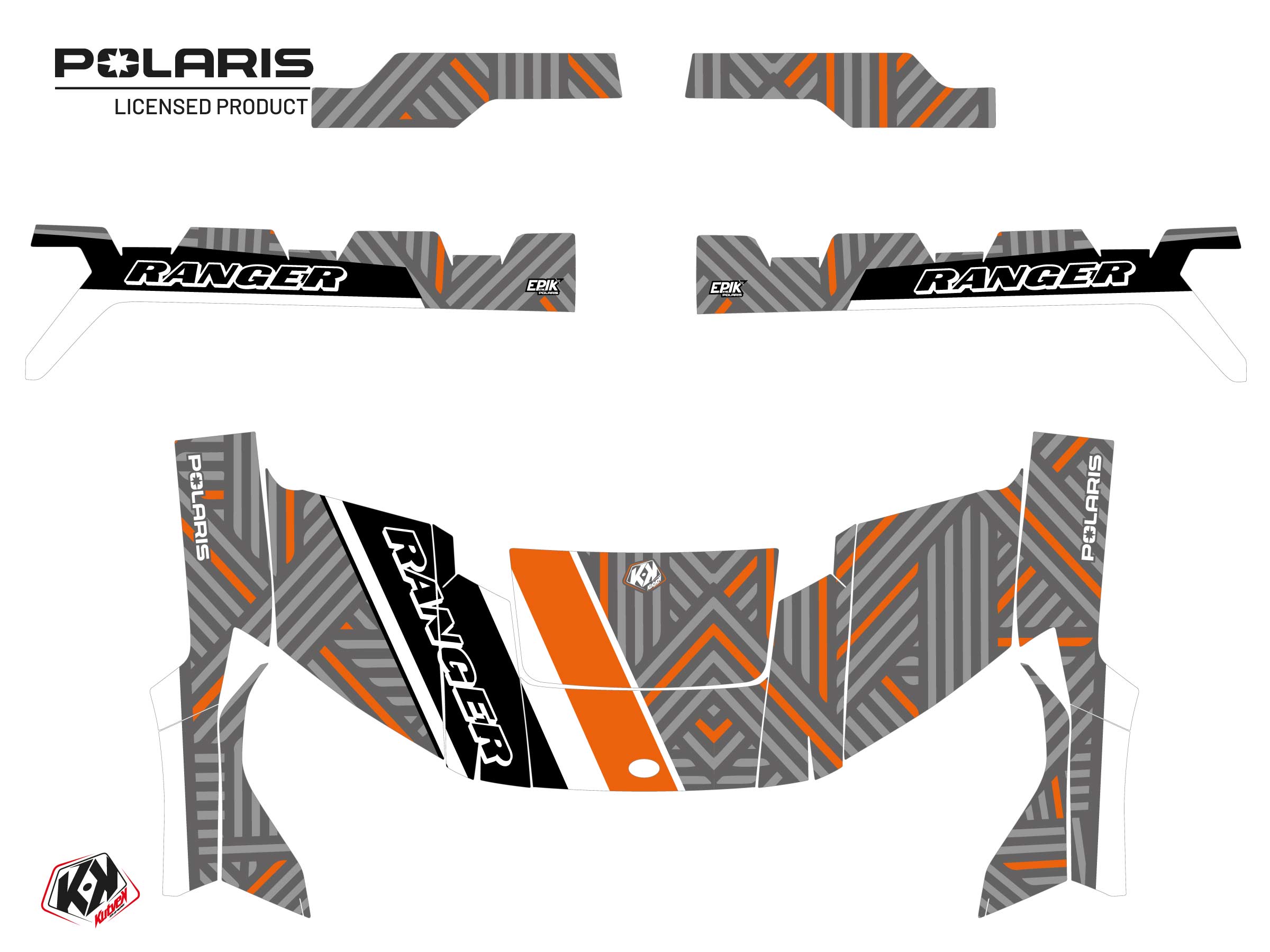 Offer you now for your Polaris Ranger Diesel UTV a graphic kit on the colors and brand name of Epik grey.